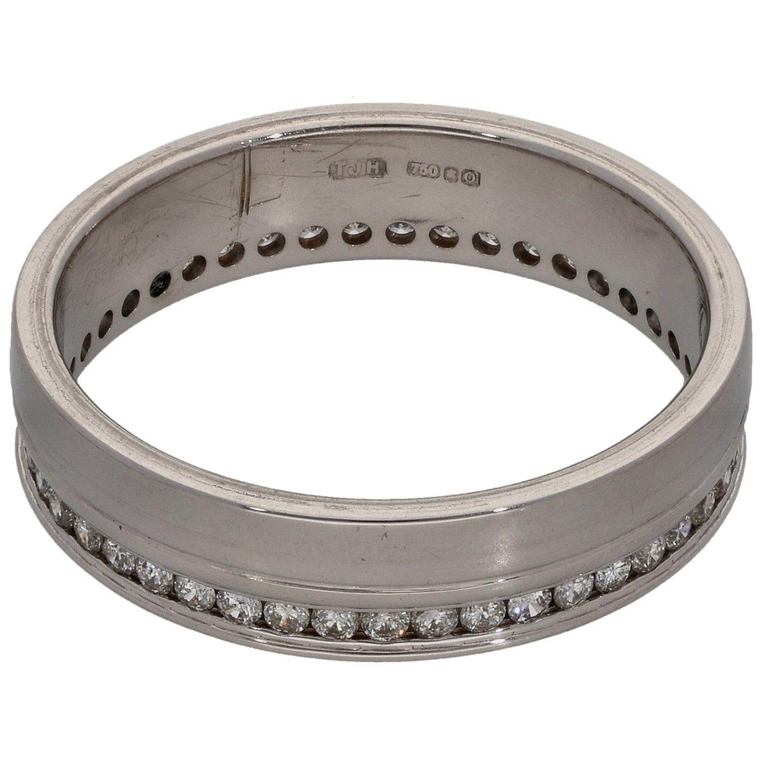 18ct White Gold 0.20ct Diamond Patterned Wedding Ring Size L