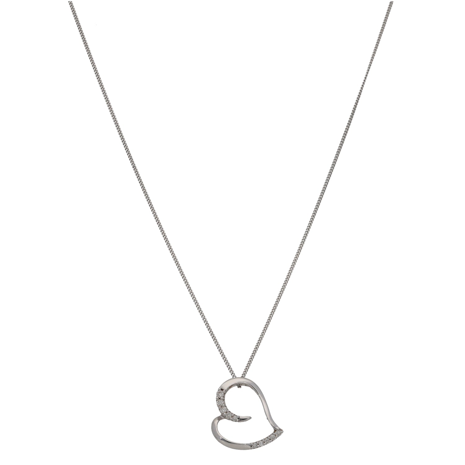 18ct White Gold 0.14ct Diamond Heart Pendant With Chain