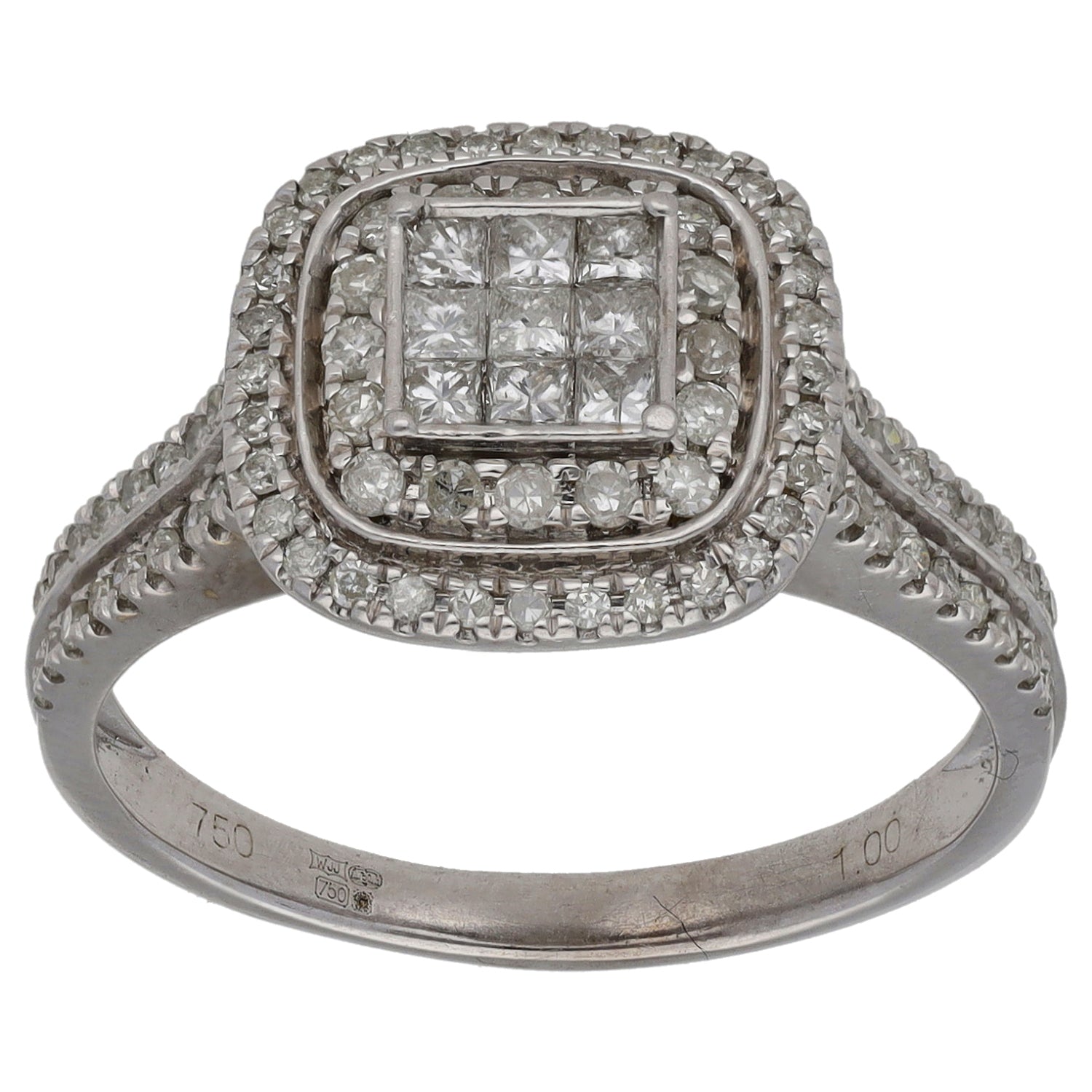 18ct White Gold 1.00ct Diamond Cluster Ring Size P