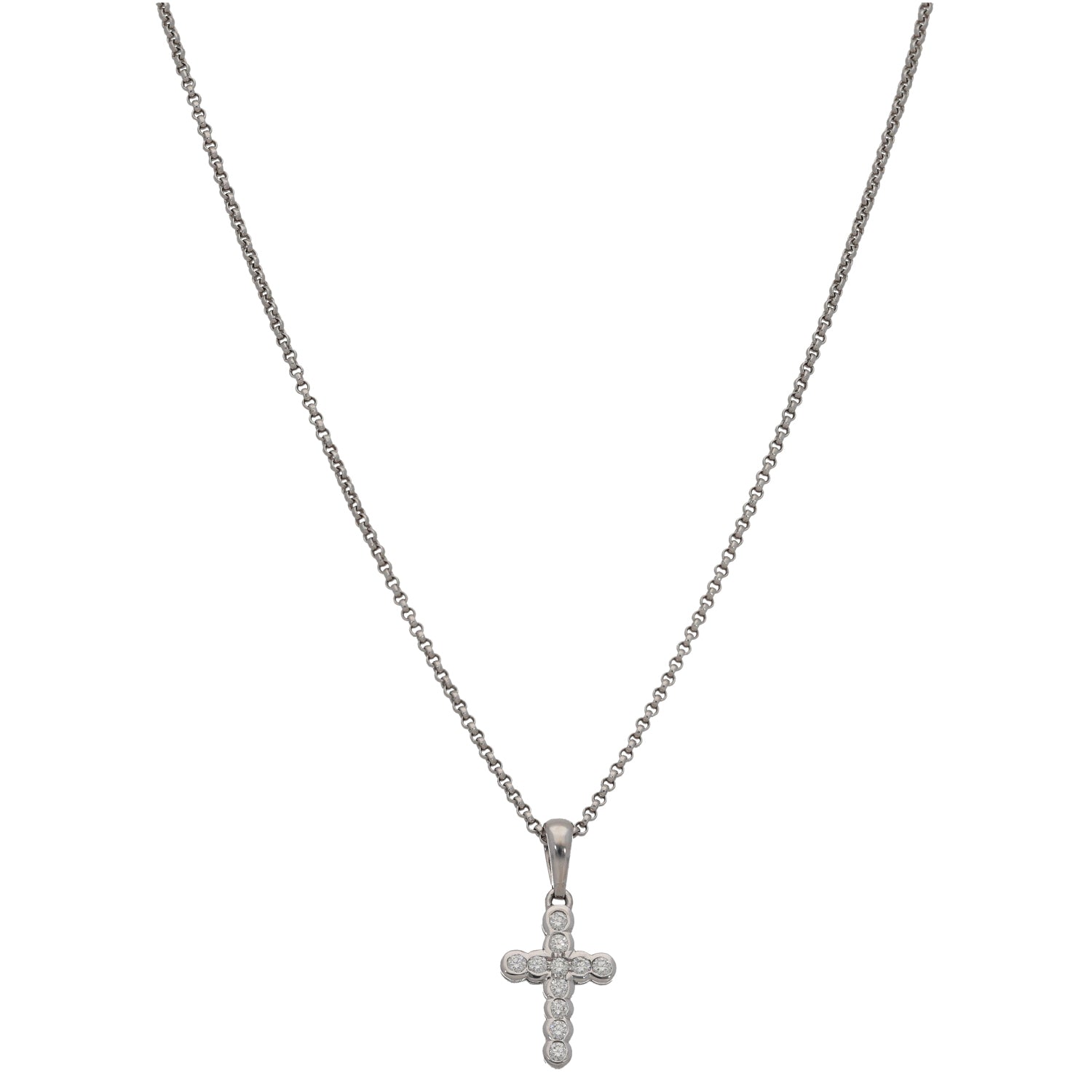 18ct White Gold 0.03ct Diamond Cross Pendant With Chain