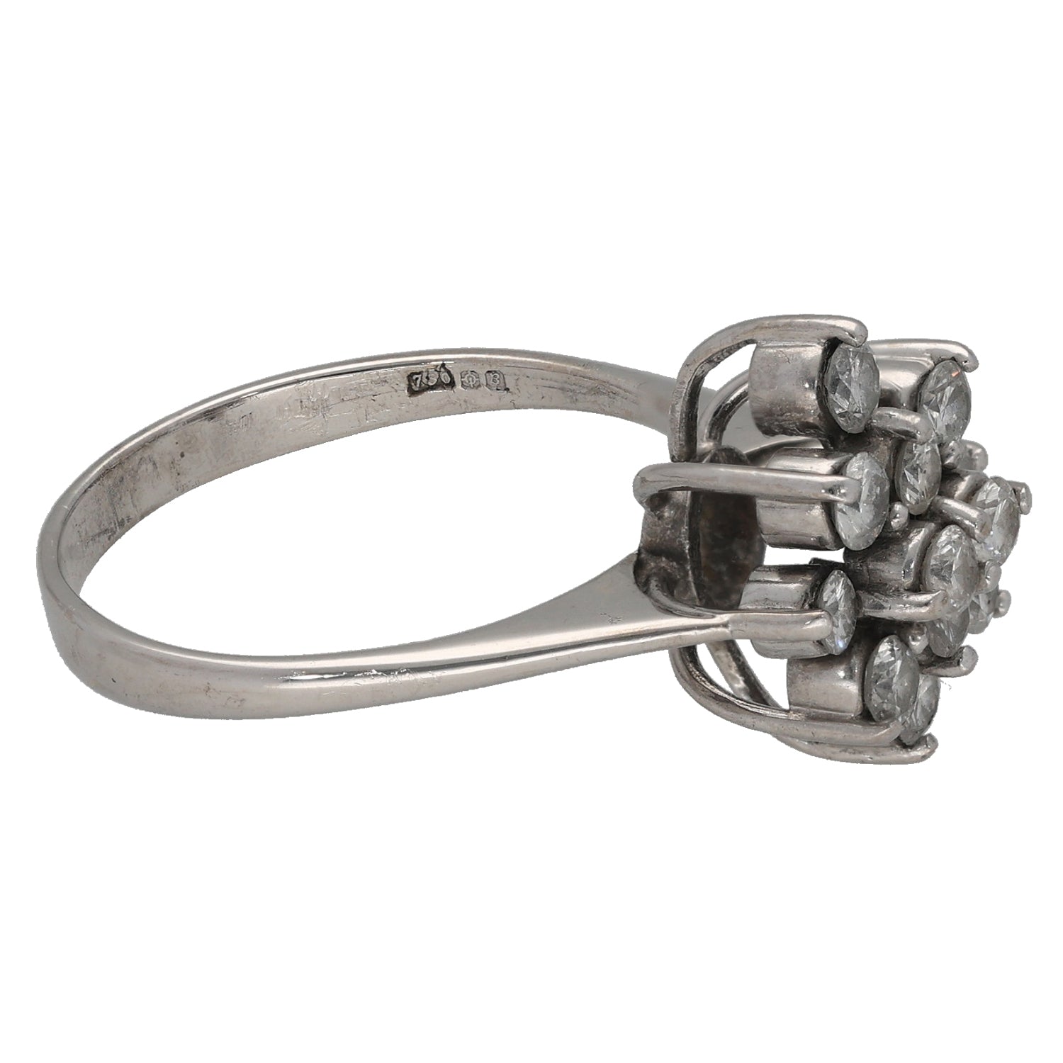 18ct White Gold 0.84ct Diamond Cluster Ring Size N