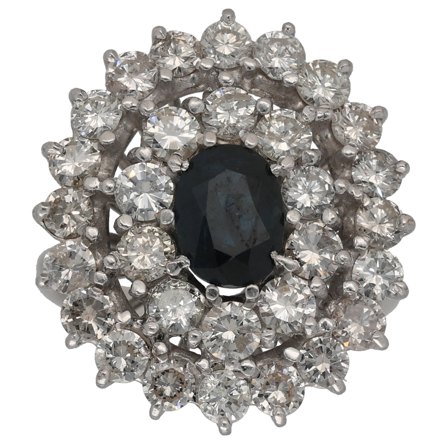 18ct White Gold 2.40ct Diamond & Sapphire Cluster Ring Size M