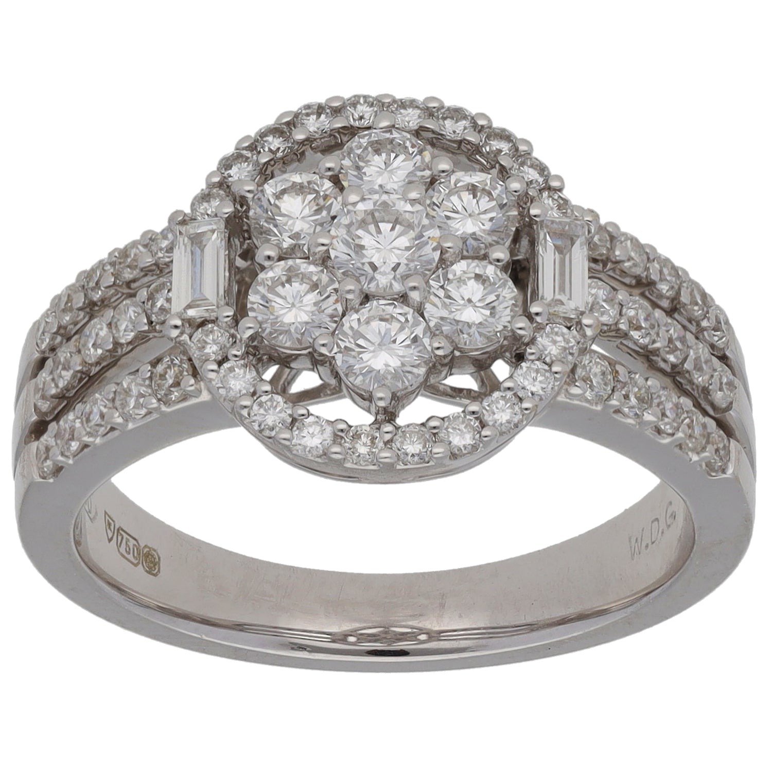 18ct White Gold 0.68ct Diamond Cluster Ring Size L