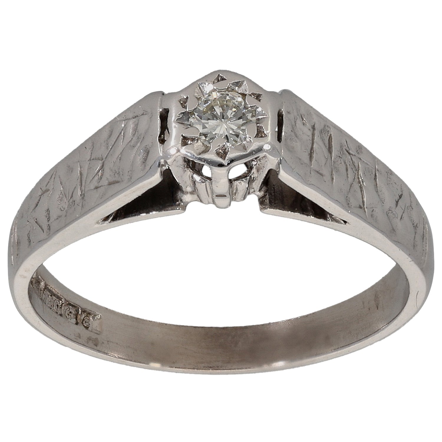 18ct White Gold 0.10ct Diamond Solitaire Ring Size M