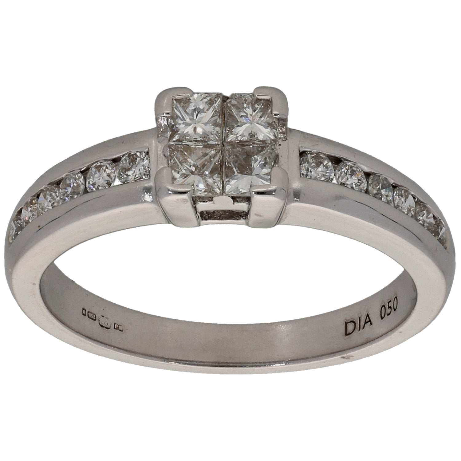 18ct White Gold 0.50ct Diamond Solitaire Ring With Accent Stones Size K