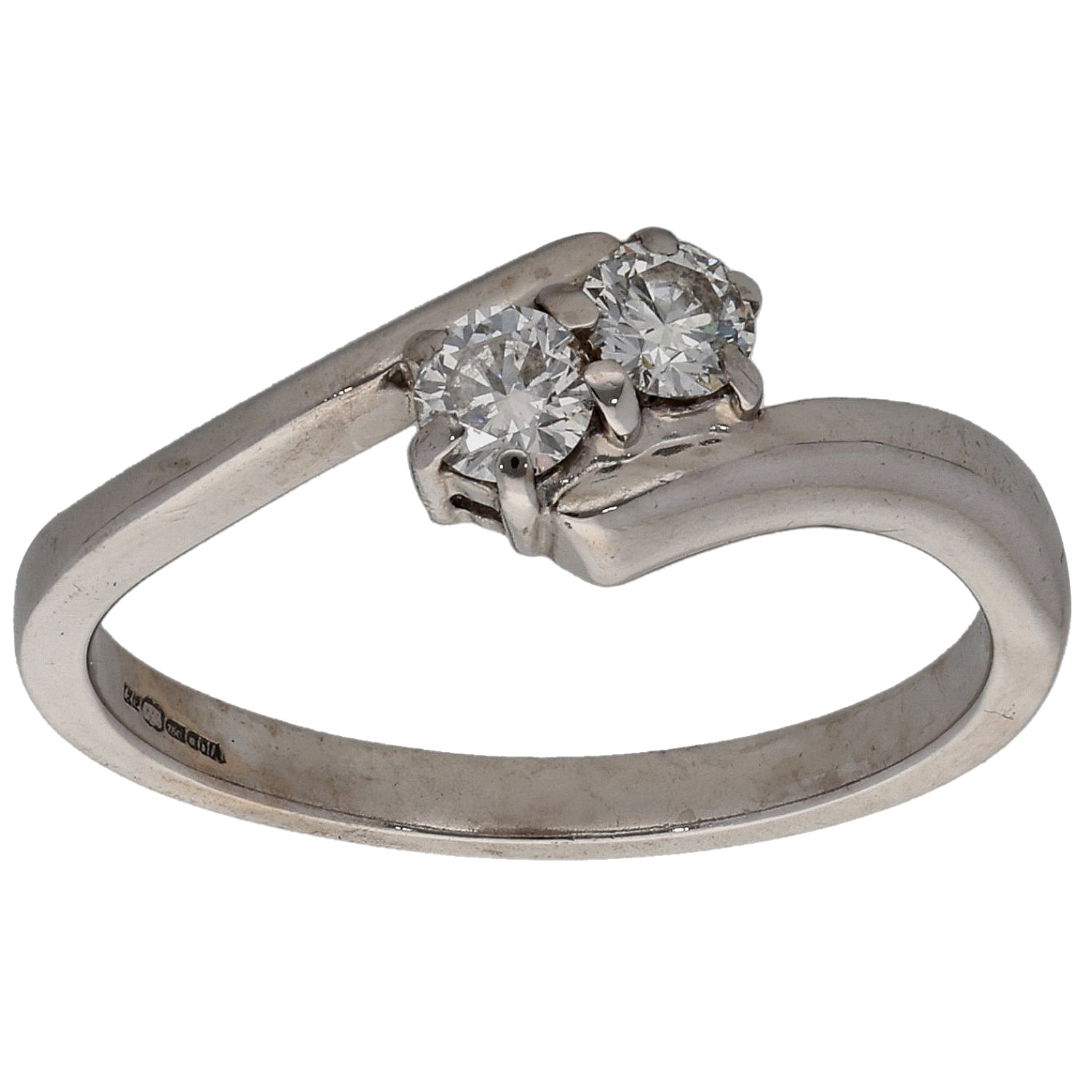 18ct White Gold 0.15ct Diamond Two Stone Ring Size M