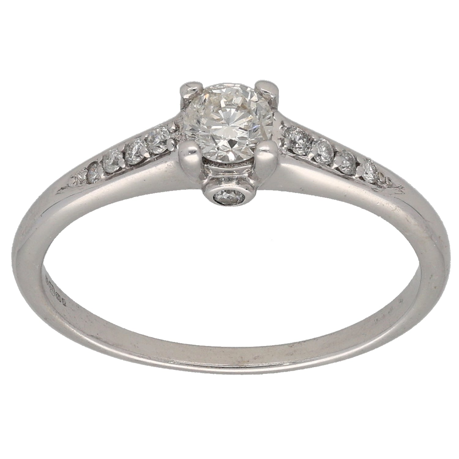 18ct White Gold 0.33ct Diamond Solitaire Ring With Accent Stones Size N