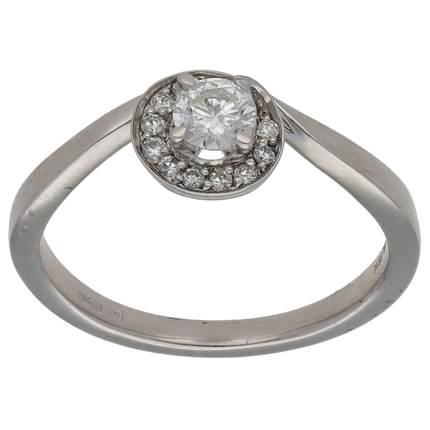 18ct White Gold 0.37ct Diamond Single Stone Ring with Accent Stones Size N