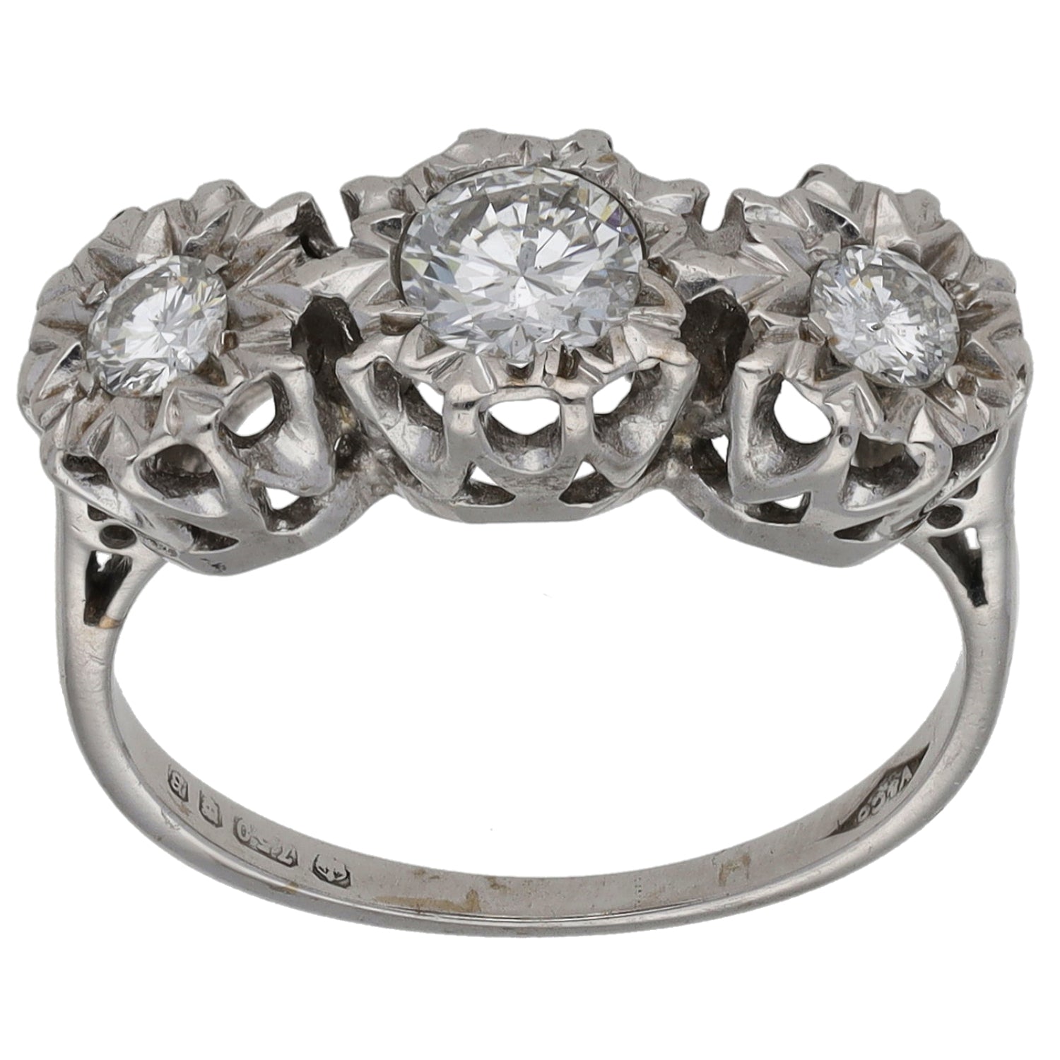 18ct White Gold 0.62ct Diamond Trilogy Ring Size K