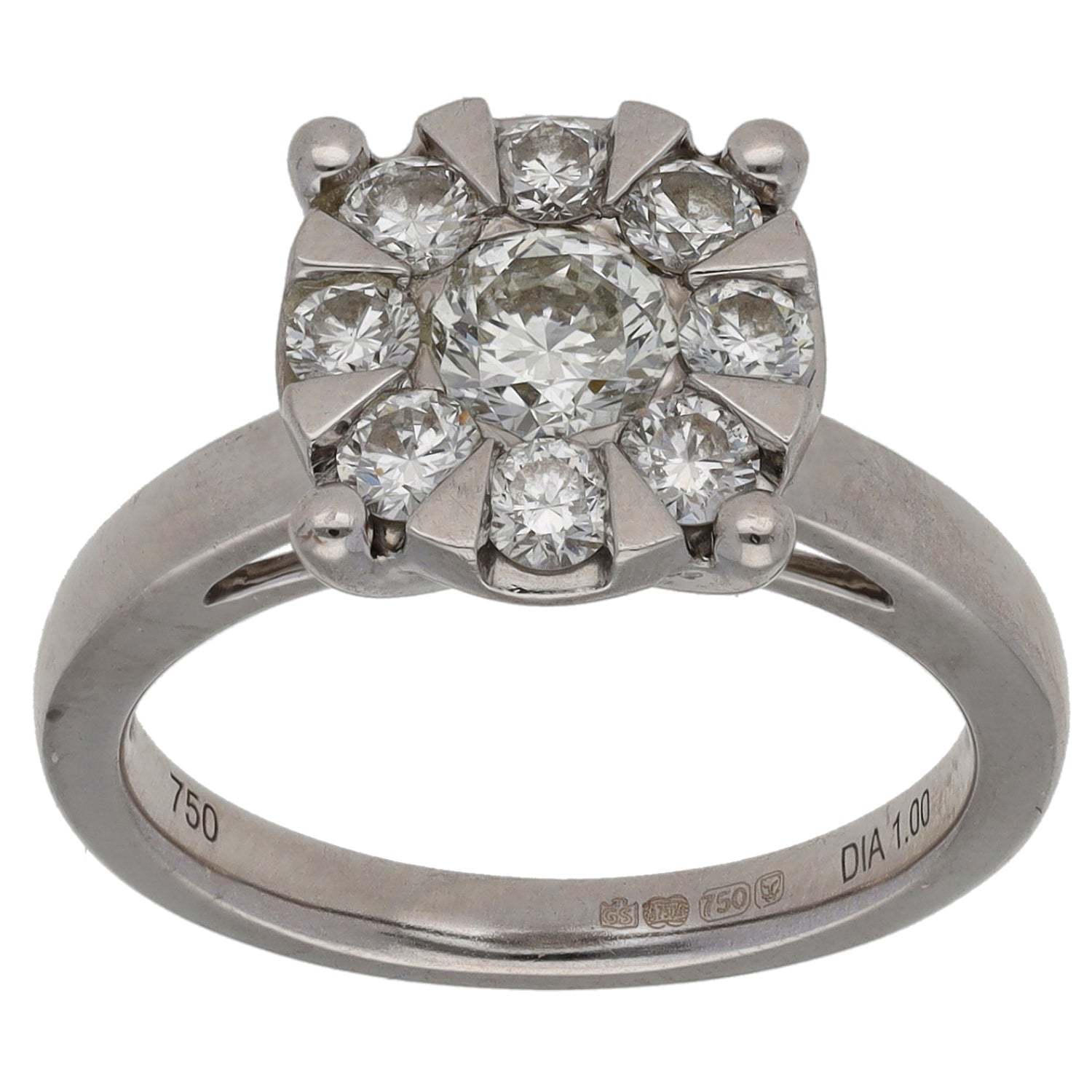 18ct White Gold 1.00ct Diamond Cluster Ring Size K
