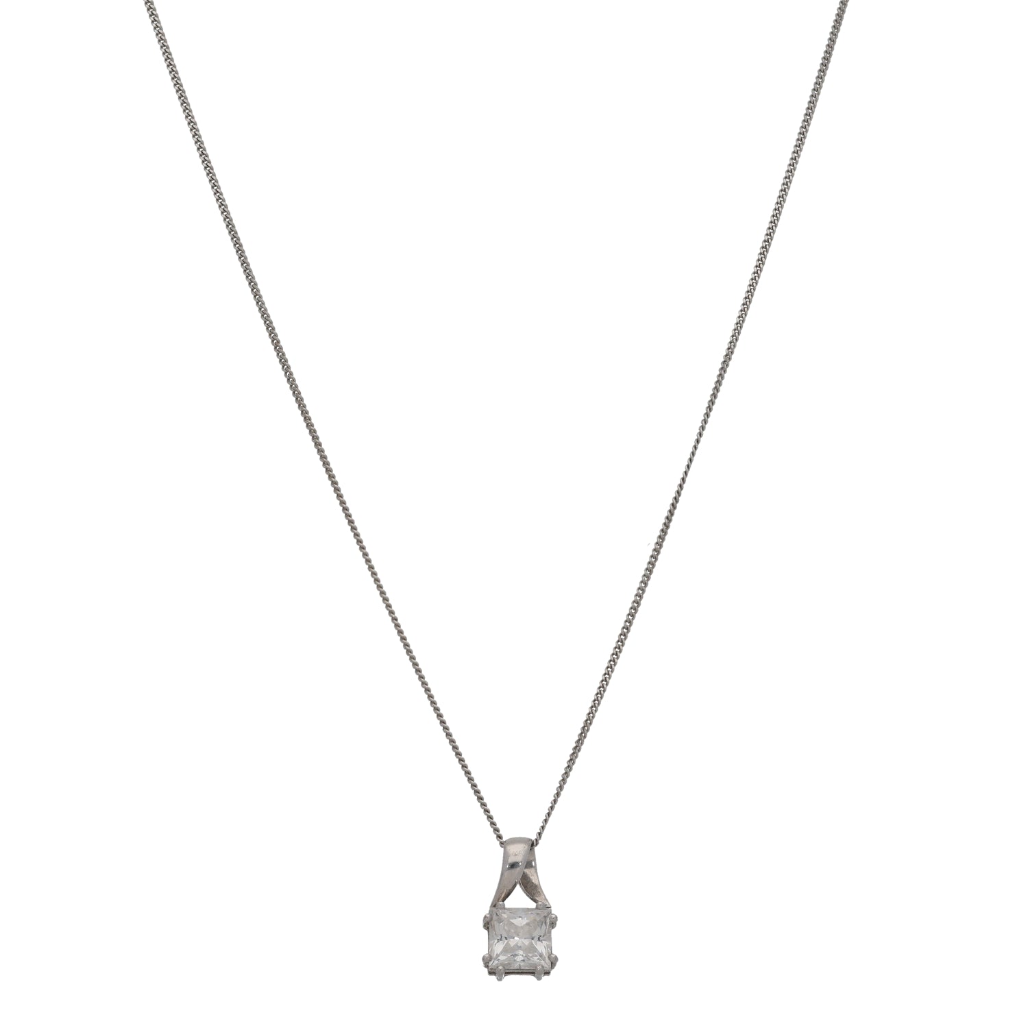 18ct White Gold Cubic Zirconia Single Stone Pendant With Chain