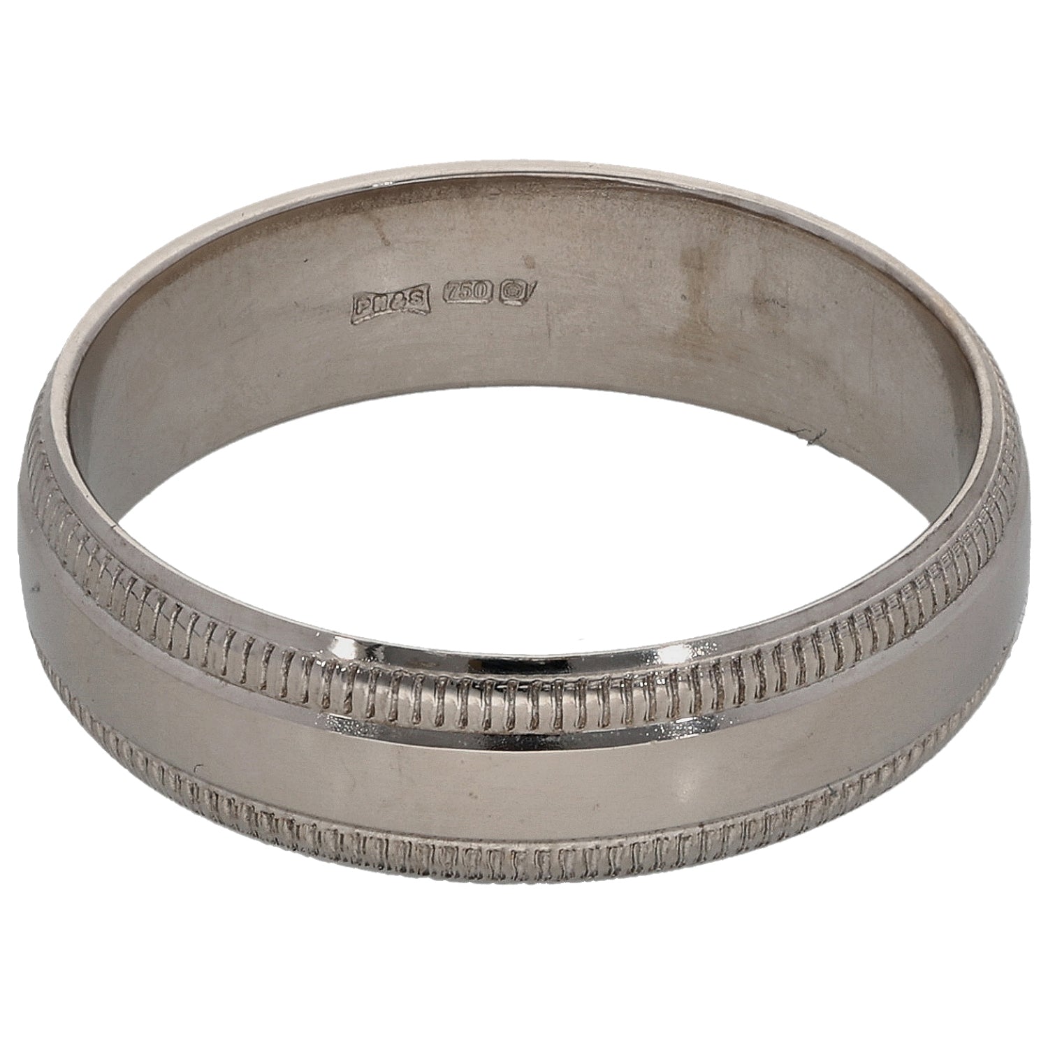 18ct White Gold Patterned Wedding Ring Size R