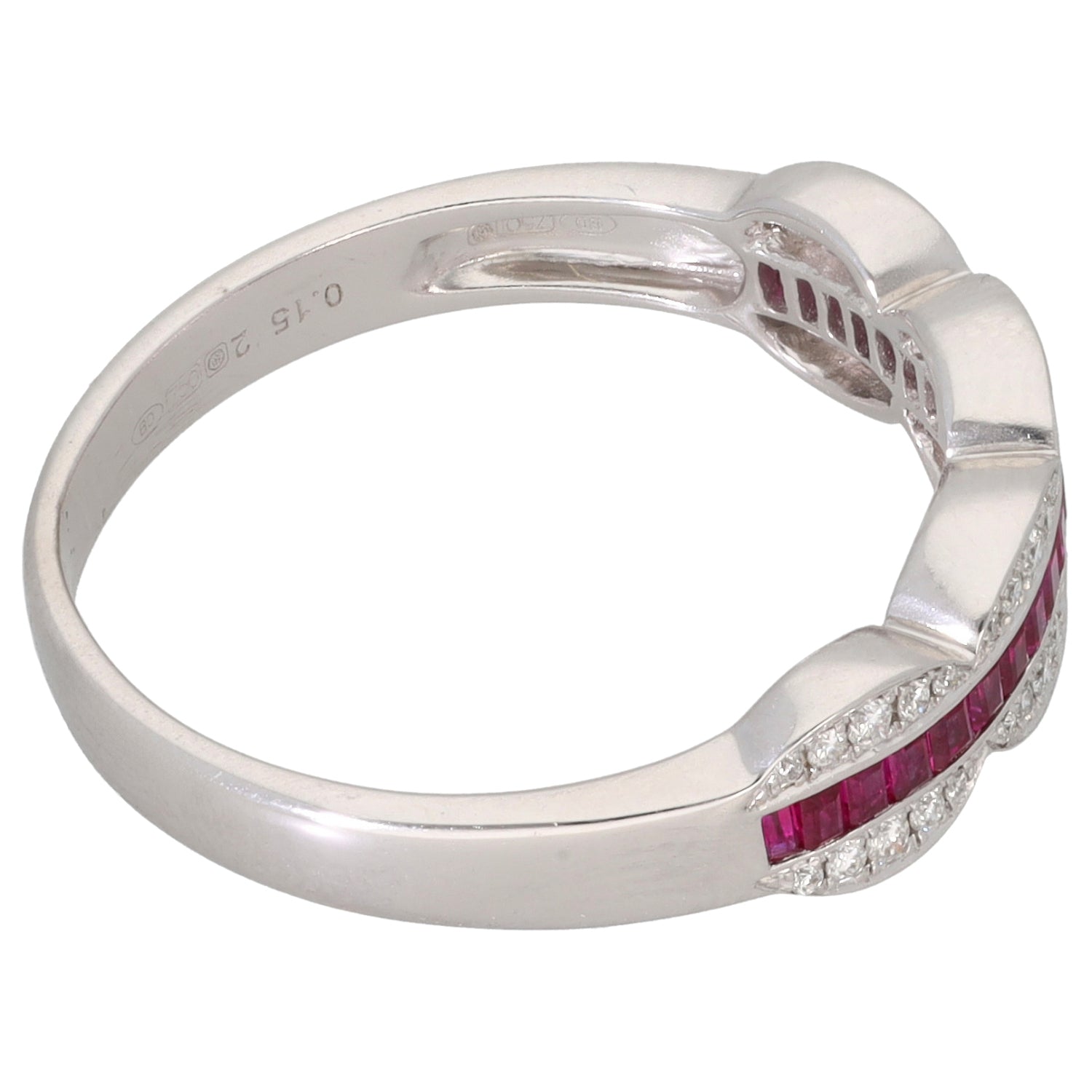 18ct White Gold Ruby & 0.15ct Diamond Dress/Cocktail Ring Size P