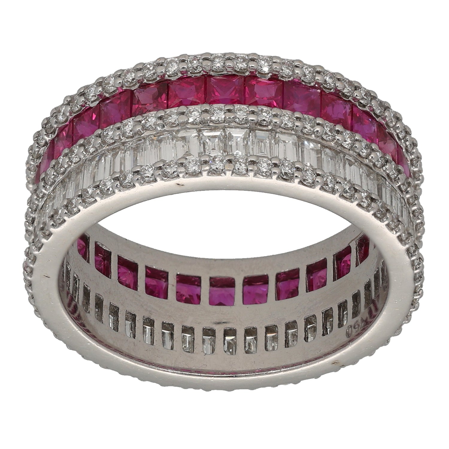 18ct White Gold Ruby & 2.62ct Diamond Dress/Cocktail Ring Size V