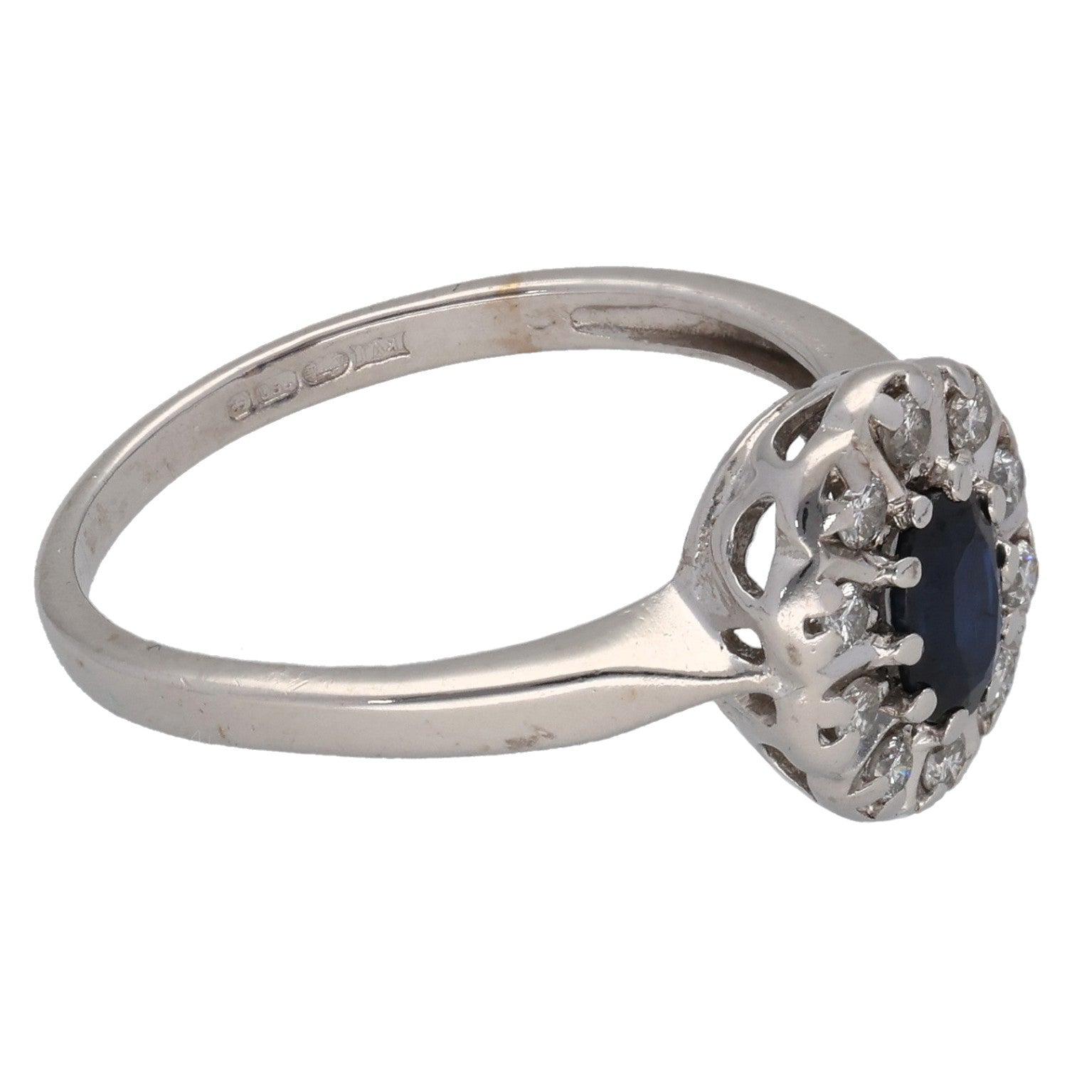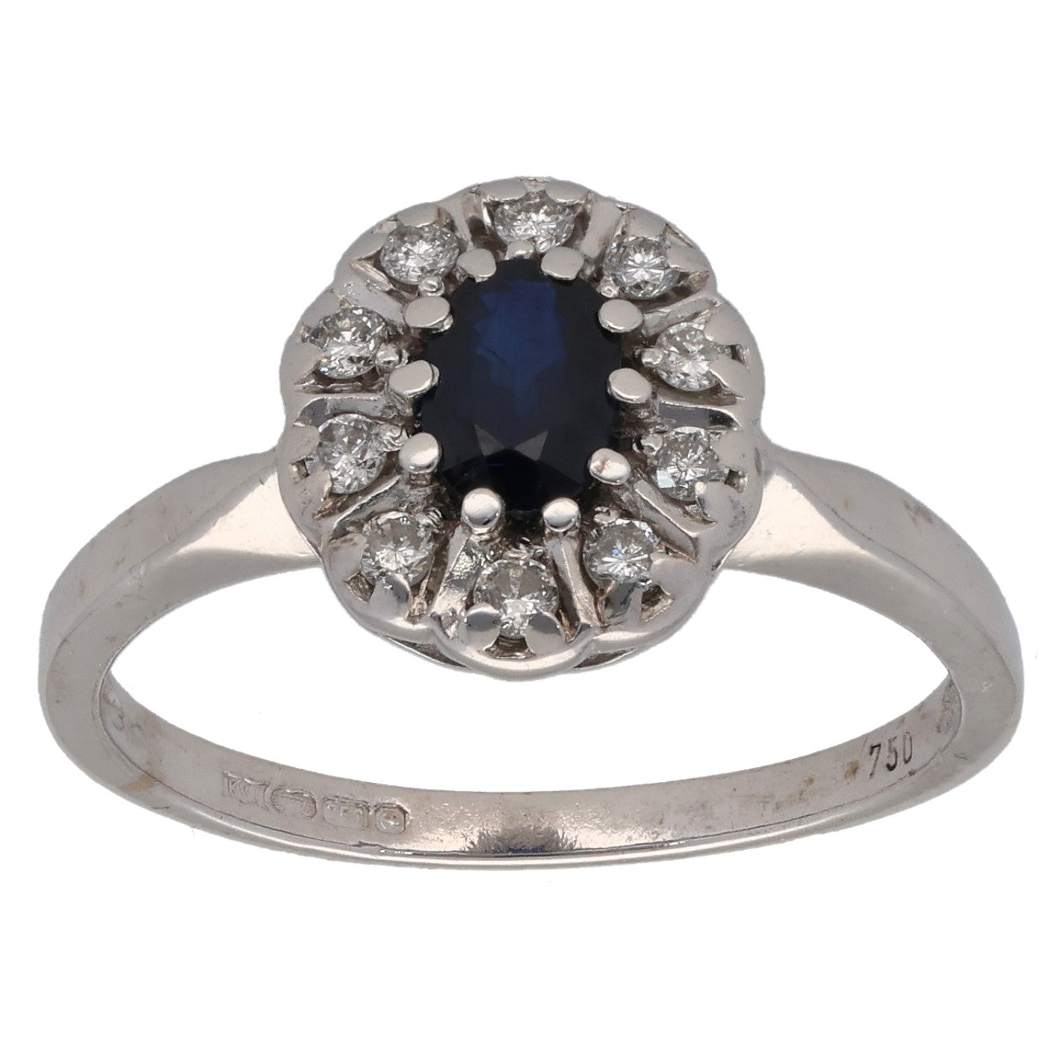 18ct White Gold Sapphire & 0.20ct Diamond Dress/Cocktail Ring Size O