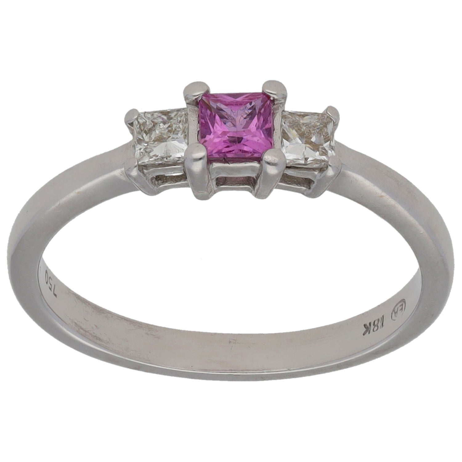 18ct White Gold Sapphire & 0.12ct Diamond Trilogy Ring Size N