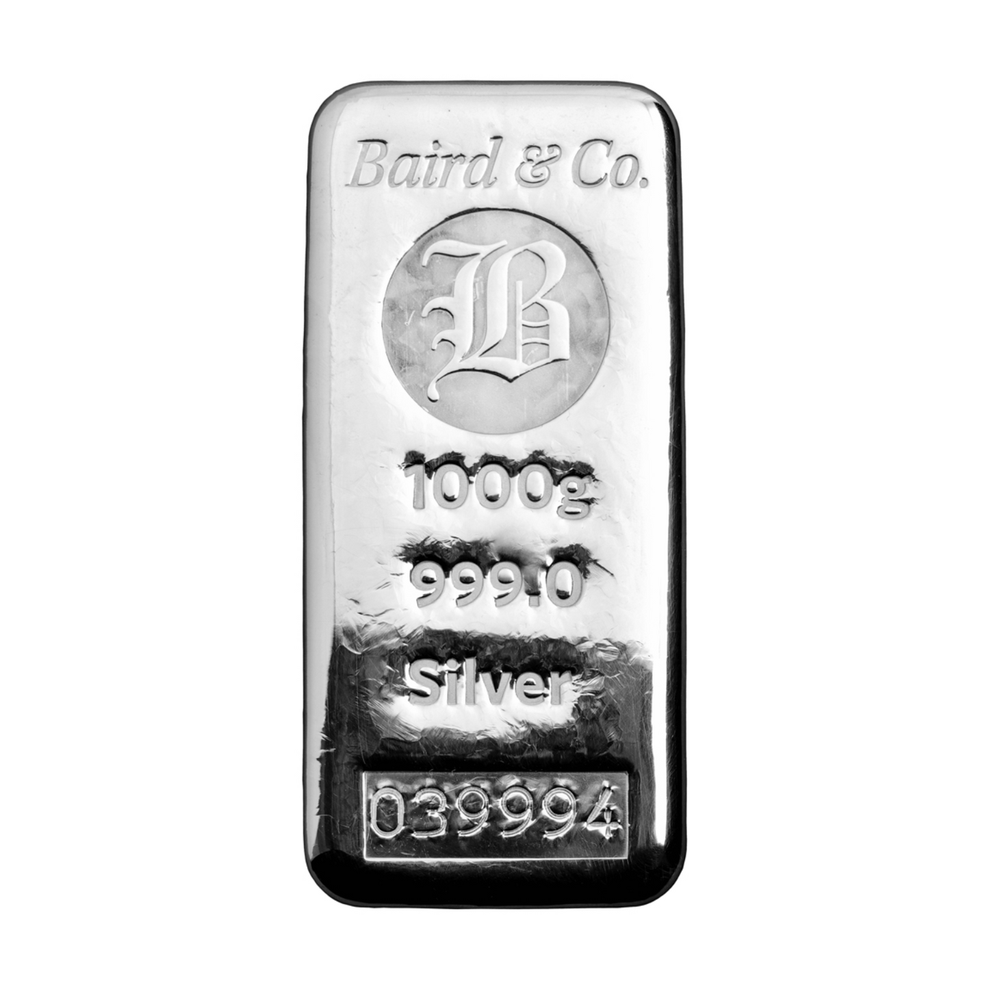 New Baird & Co Fine Silver 1kg Cast Bar