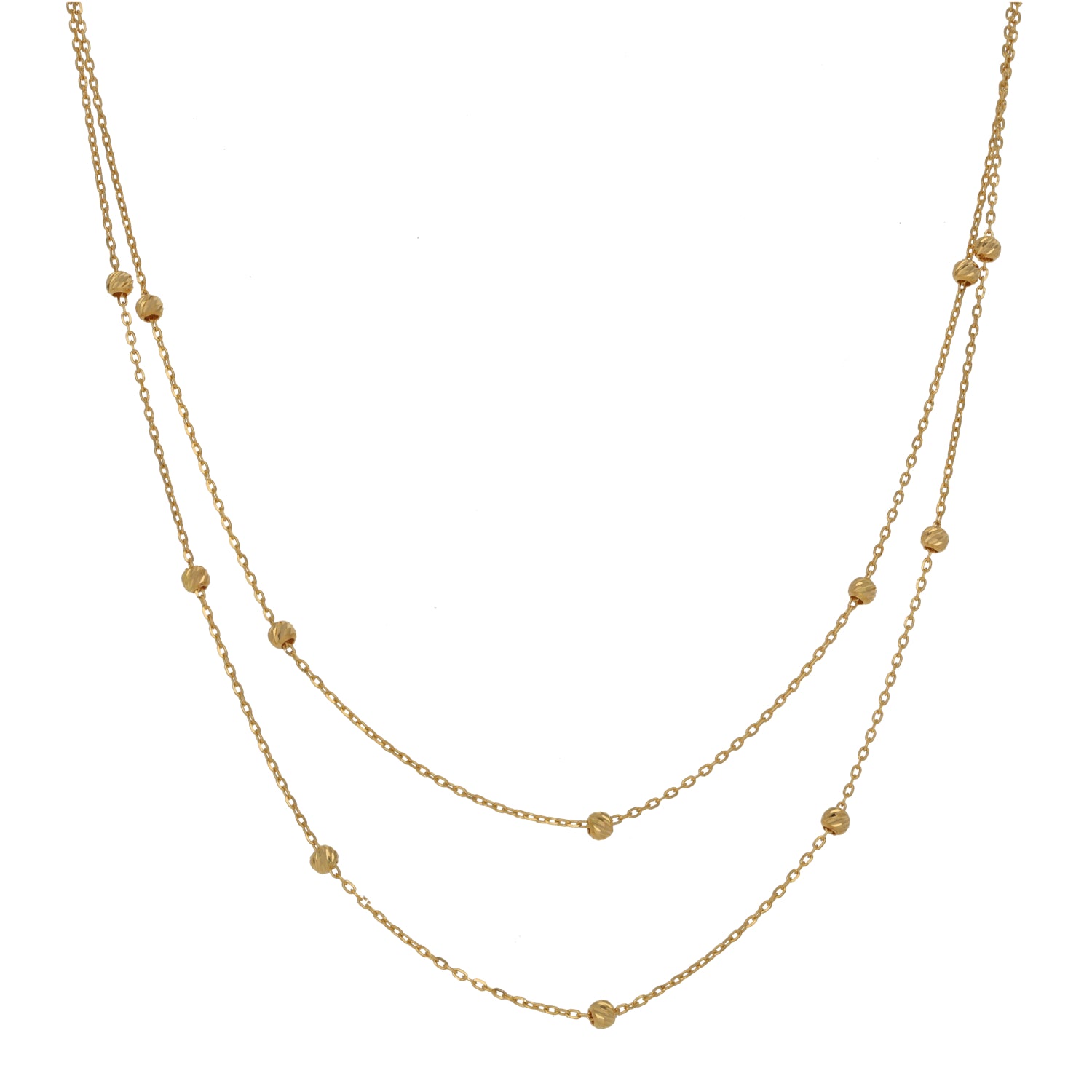 New 22ct Gold Double Row Bead Necklace 18"