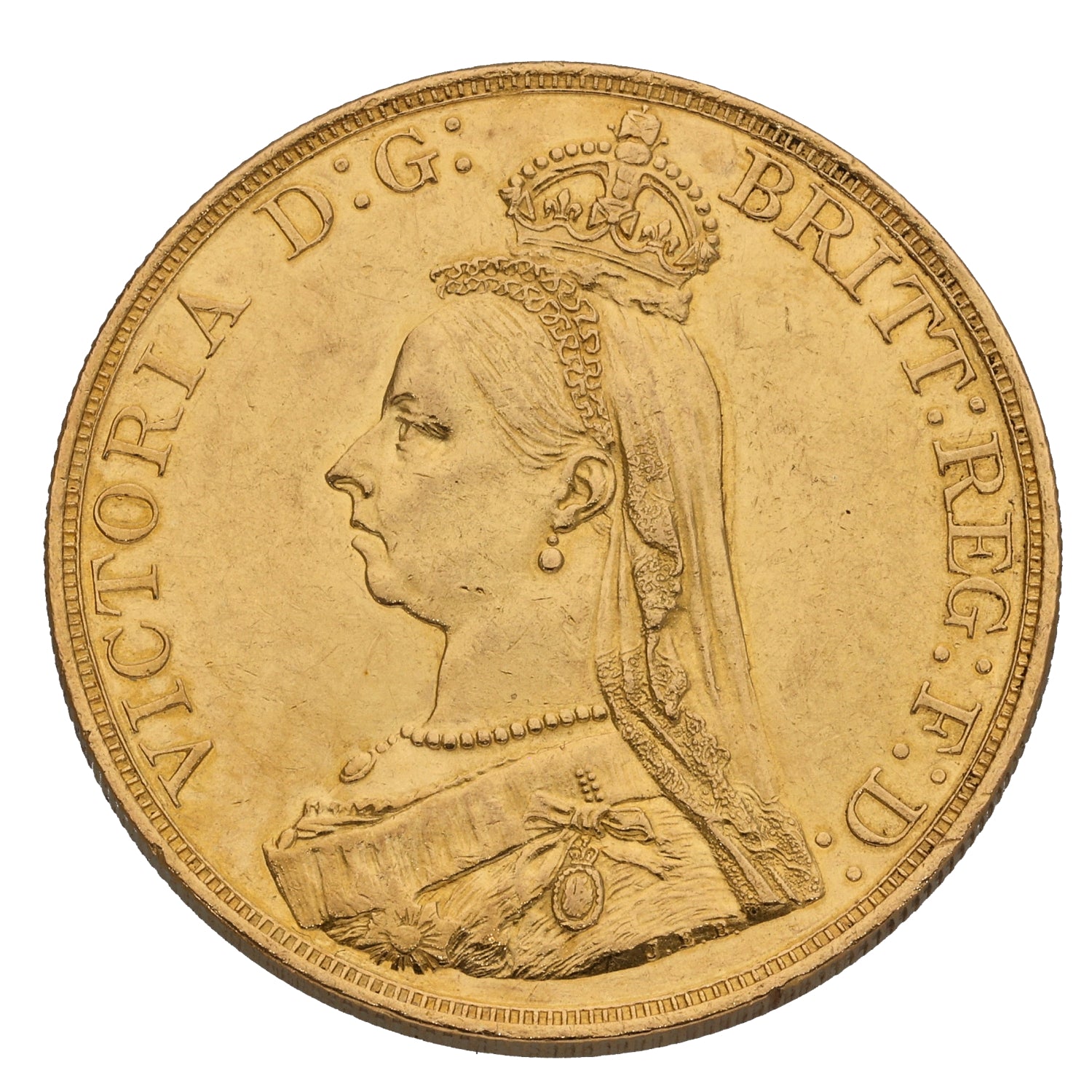 22ct Gold Queen Victoria Quintuple Sovereign Coin 1887