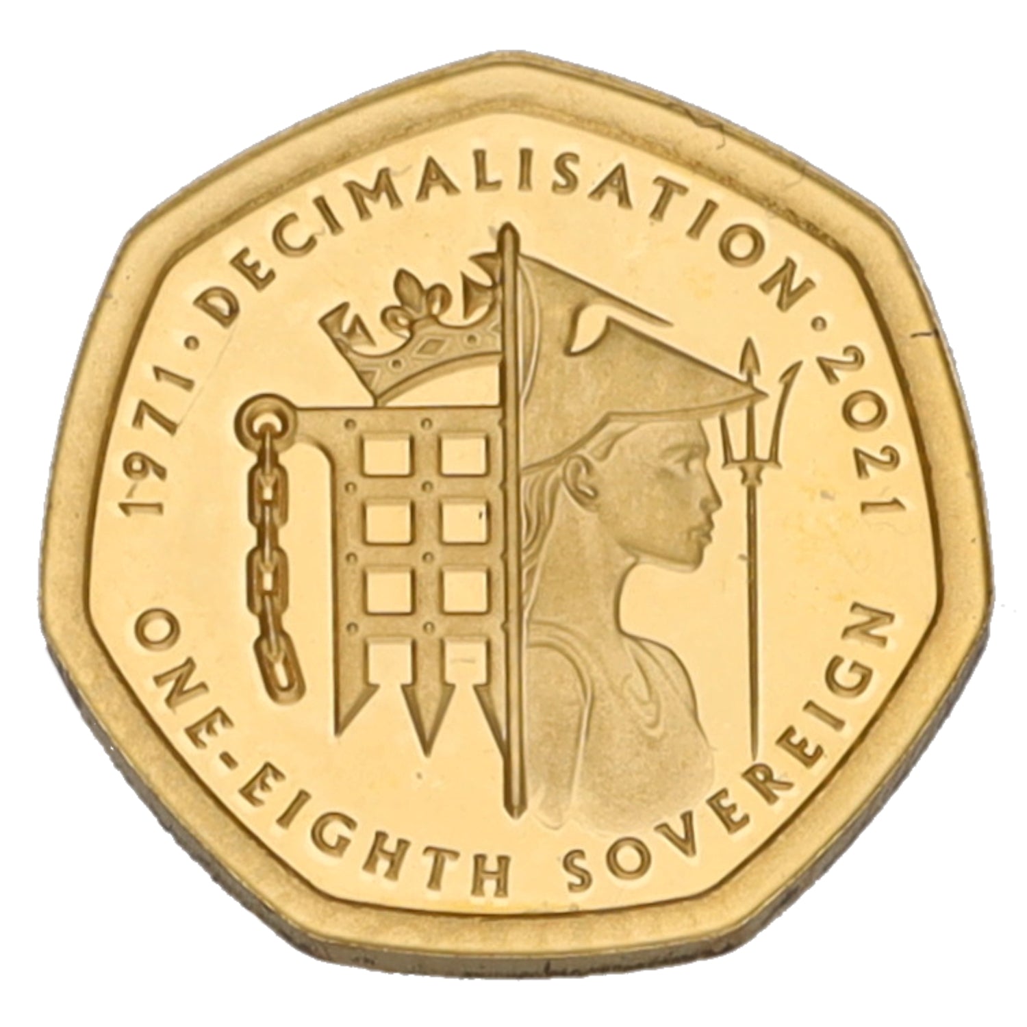 22ct Gold Queen Elizabeth II Decimalisation Eighth Sovereign Coin 2021