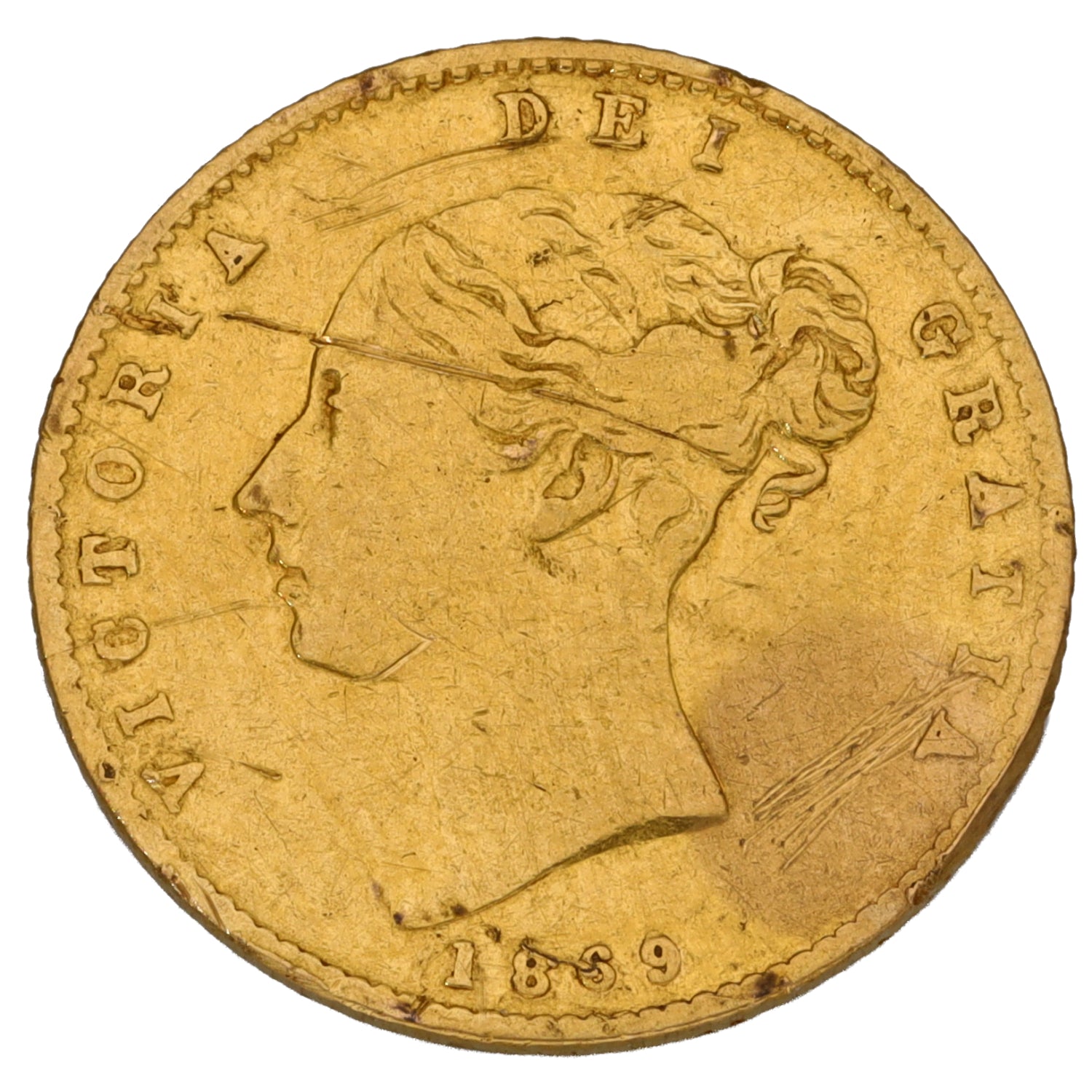 22ct Gold Queen Elizabeth II Half Sovereign Coin 1869