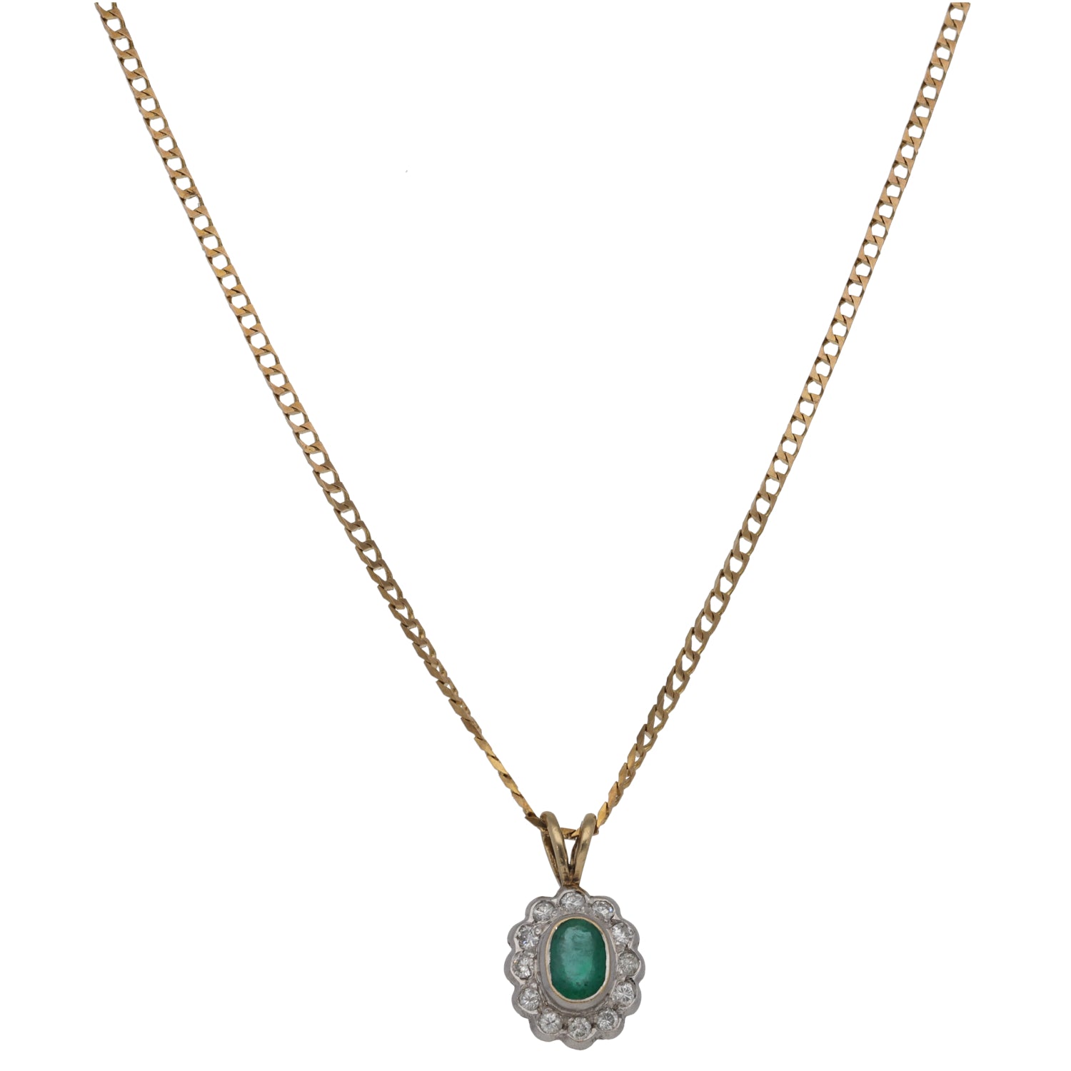 9ct Gold Emerald & 0.12ct Diamond Cluster Pendant