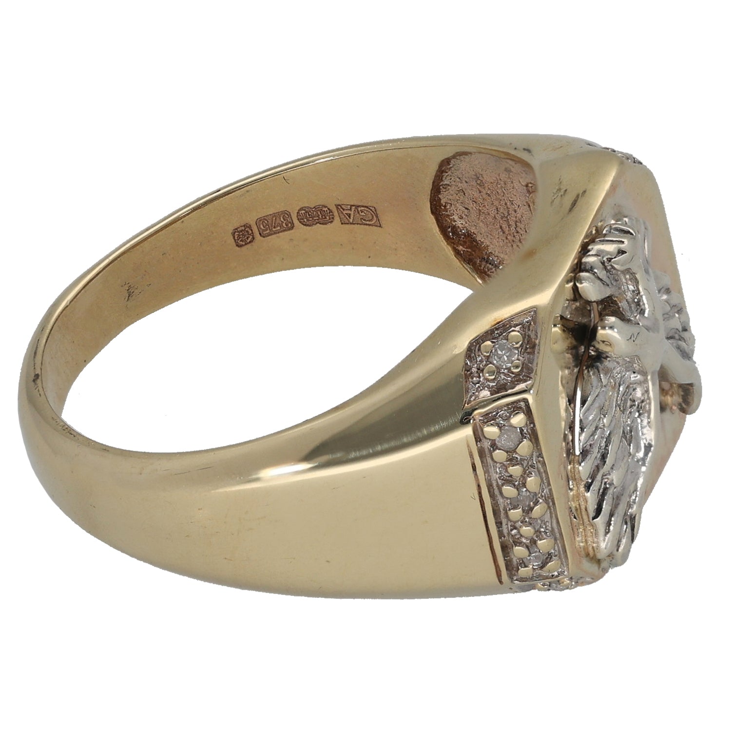 9ct Bi-Colour Gold 0.05ct Diamond Emblem Ring Size T