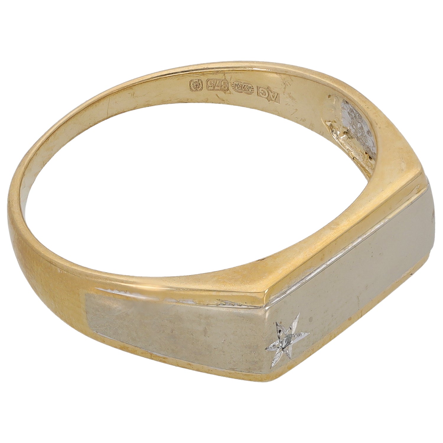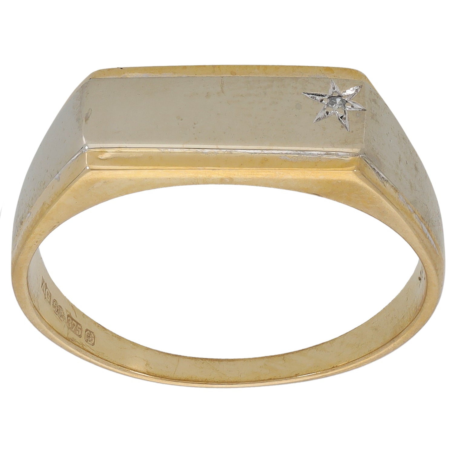 9ct Bi-Colour Gold 0.005ct Diamond Patterned Signet Ring Size U