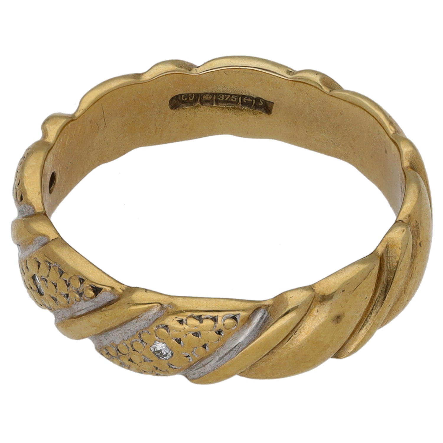 9ct Bicolour Gold 0.025ct Diamond Patterned Wedding Ring Size N
