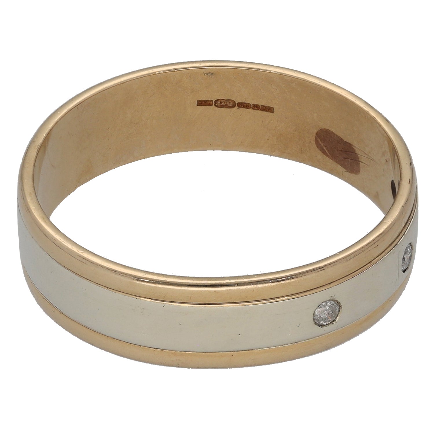 9ct Bicolour Gold 0.06ct Diamond Patterned Wedding Ring Size V