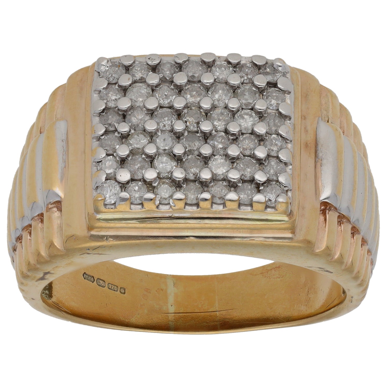 9ct Bi-Colour Gold 1.26ct Diamond Patterned Signet Ring Size Z