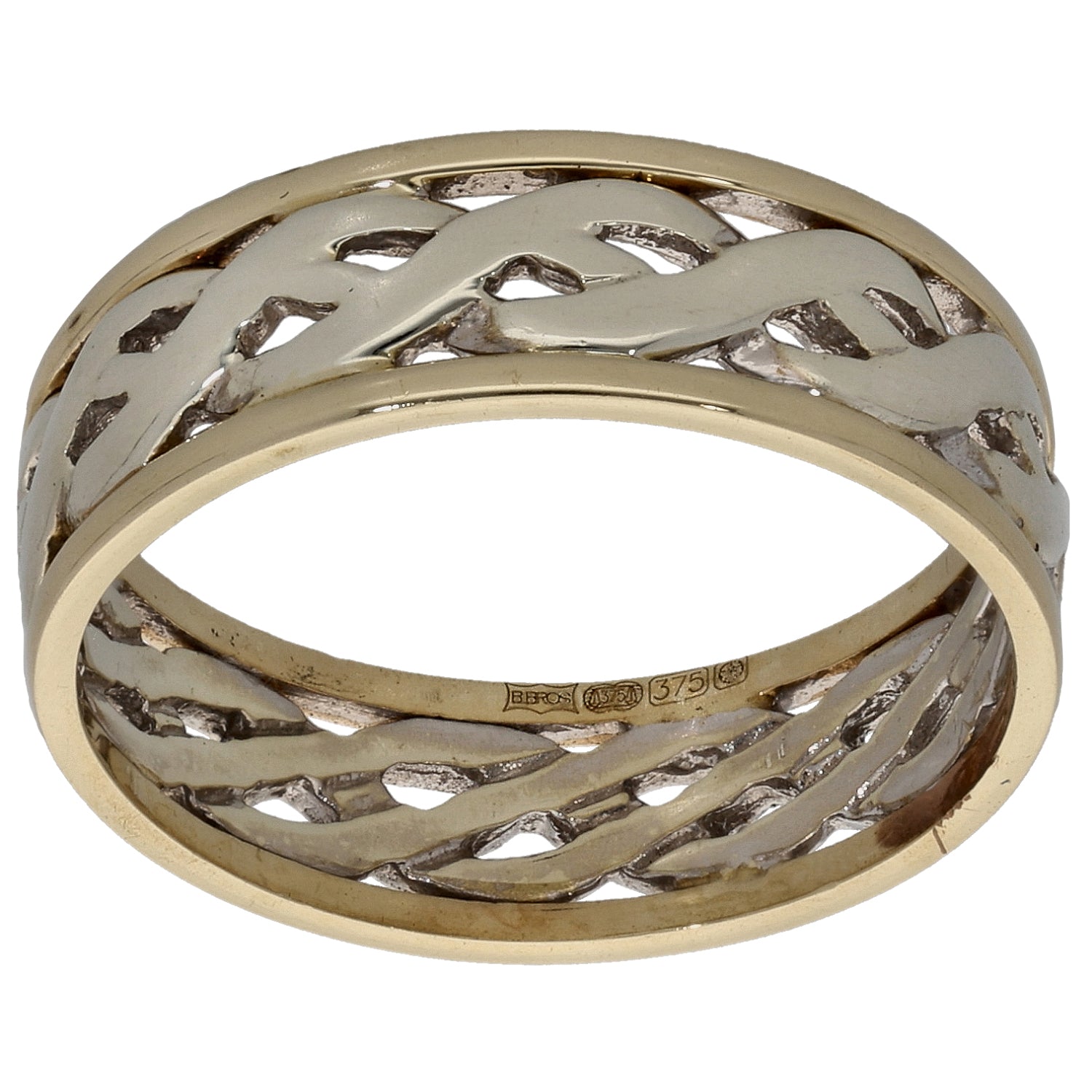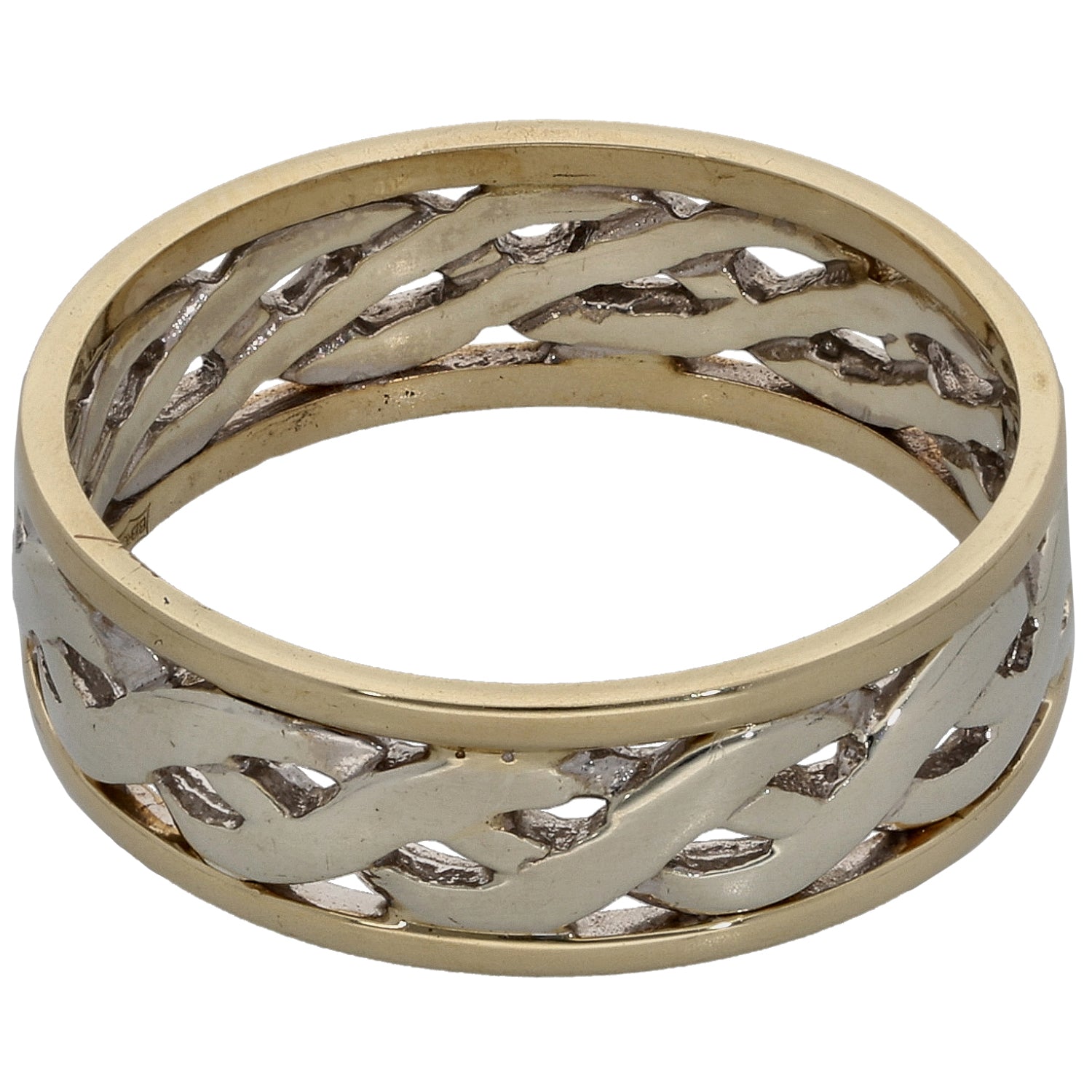 9ct Bi-Colour Gold Patterned Wedding Ring Size L