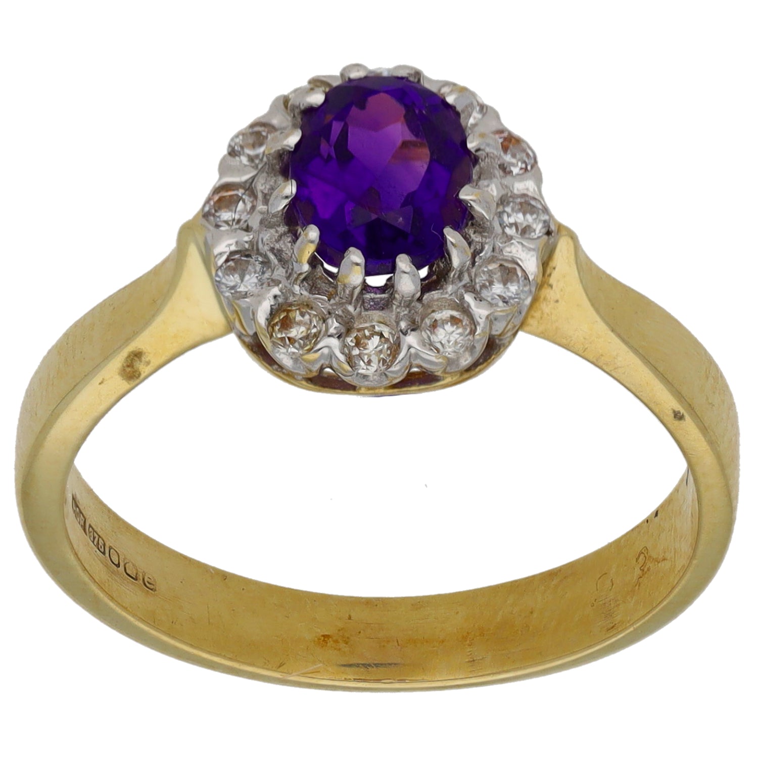 9ct Gold Amethyst & Cubic Zirconia Dress/Cocktail Ring Size O