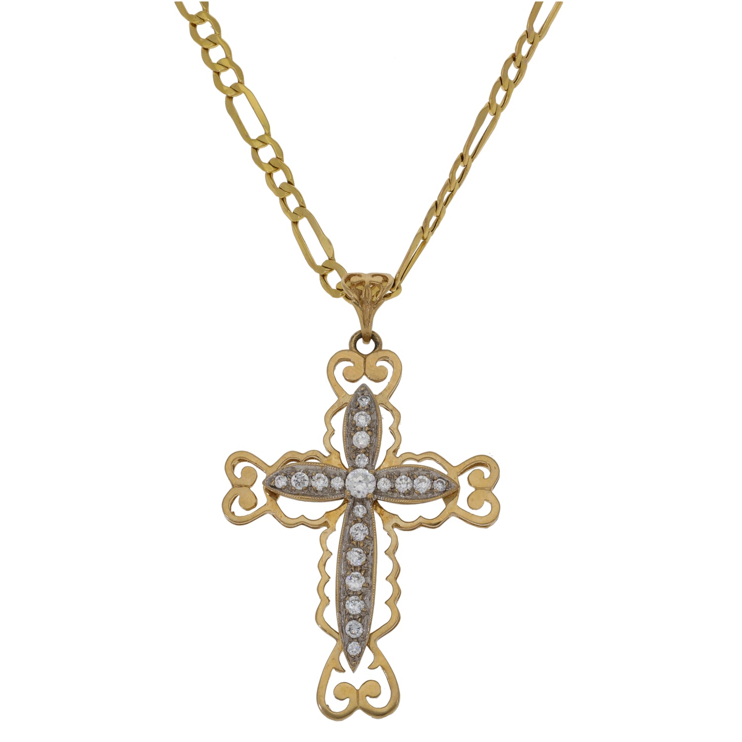 9ct Gold Cubic Zirconia Cross Pendant With Chain