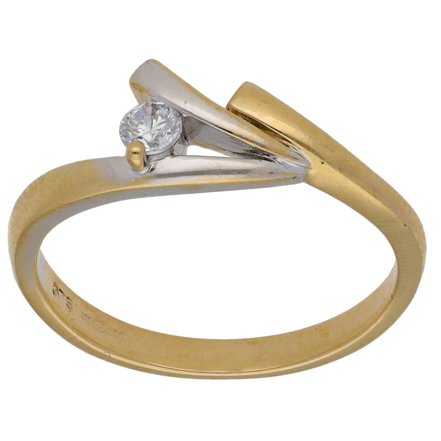 9ct Bi-Colour Gold Cubic Zirconia Single Stone Ring Size N
