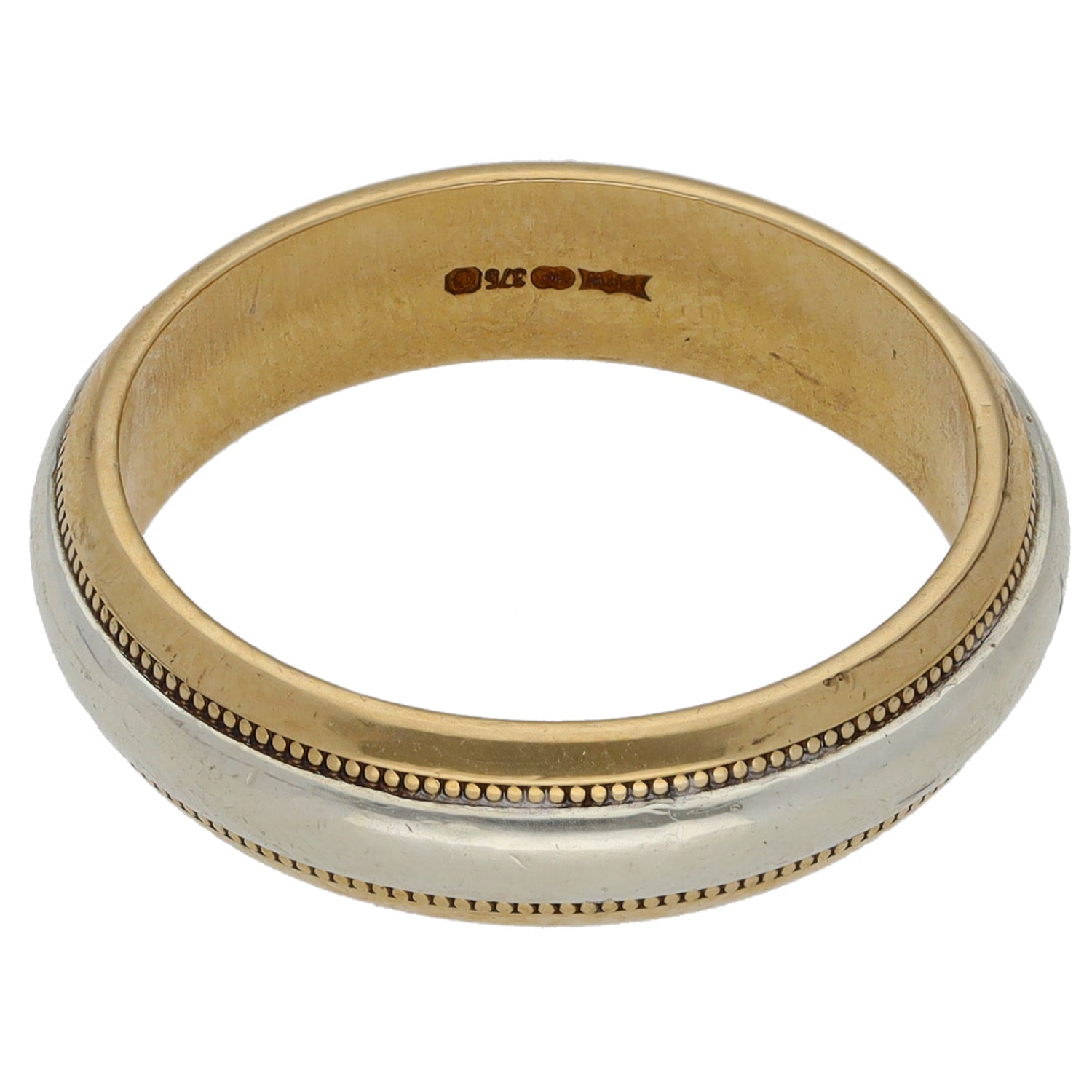 9ct Bi-Colour Gold Patterned Wedding Ring Size L