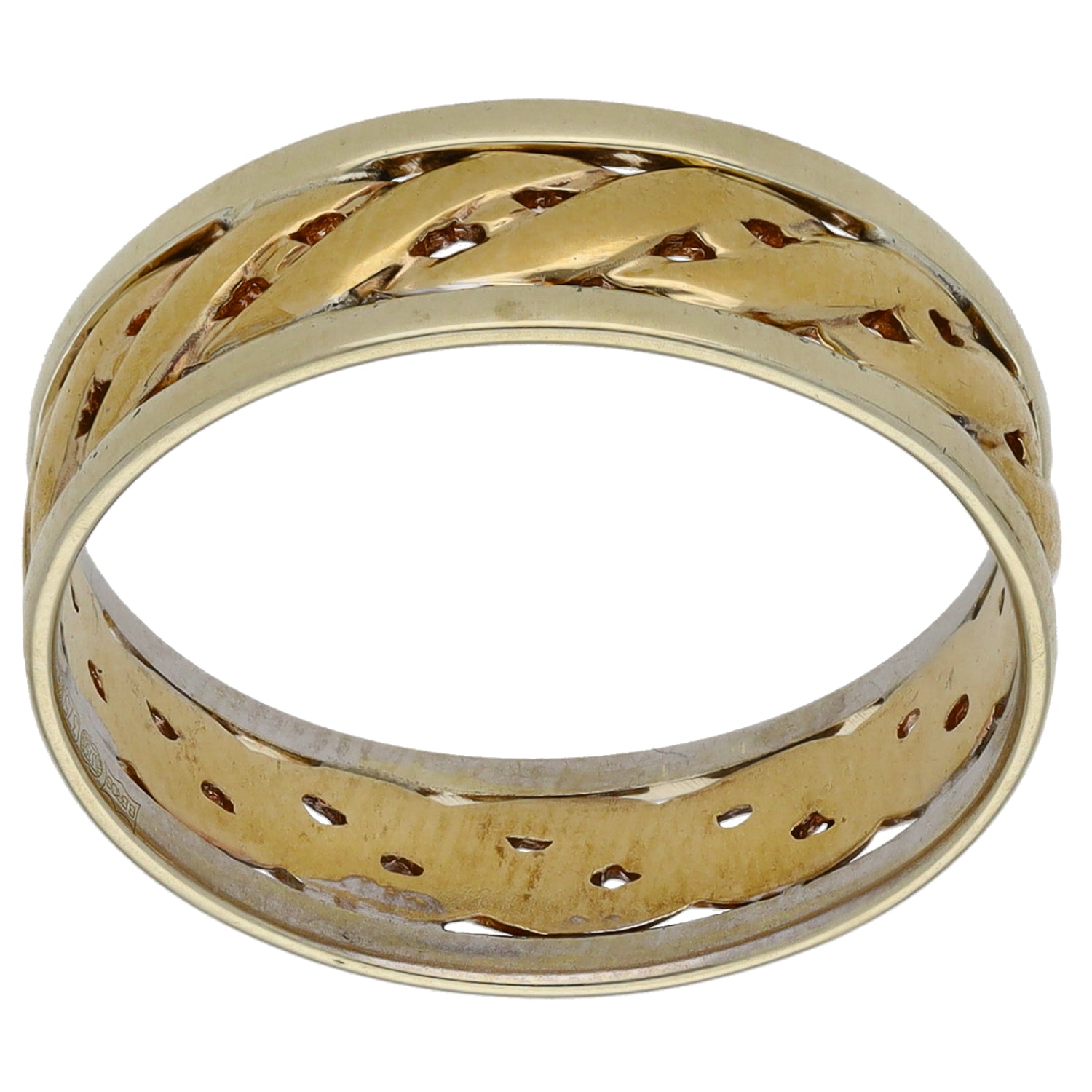 9ct Bi-Colour Gold Patterned Wedding Ring Size Q