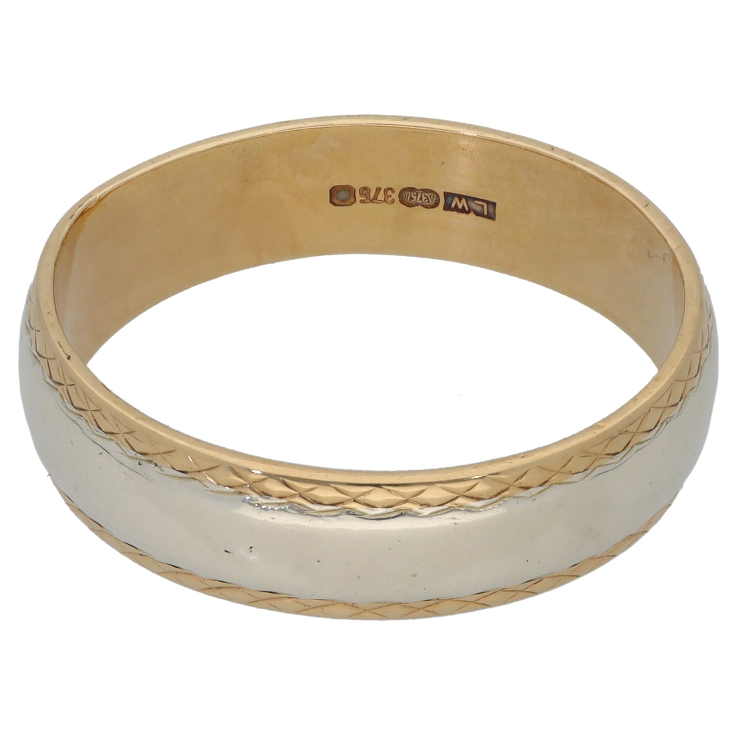 9ct Bi-Colour Gold Patterned Wedding Ring Size W