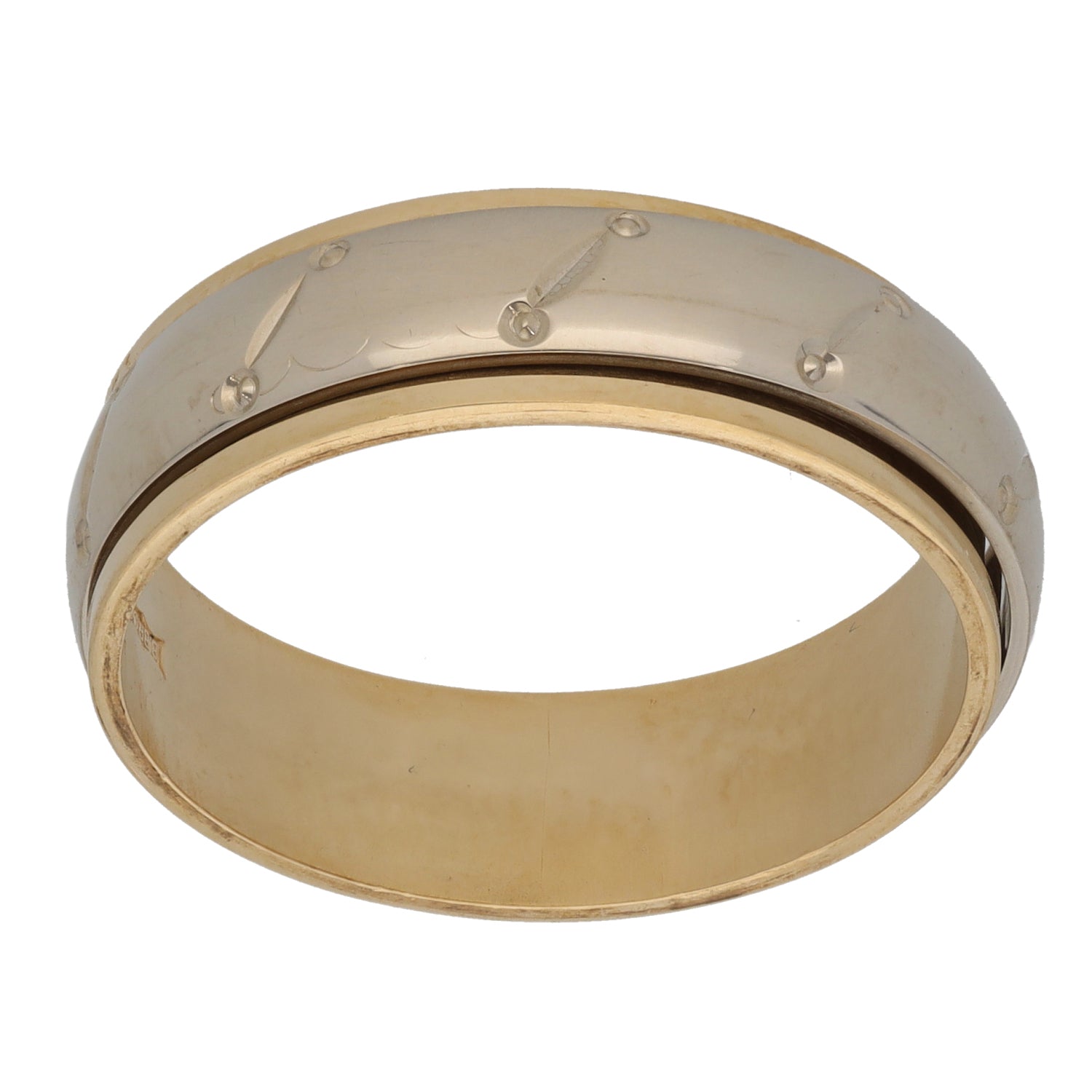 9ct Bi-Colour Gold Patterned Wedding Ring Size X