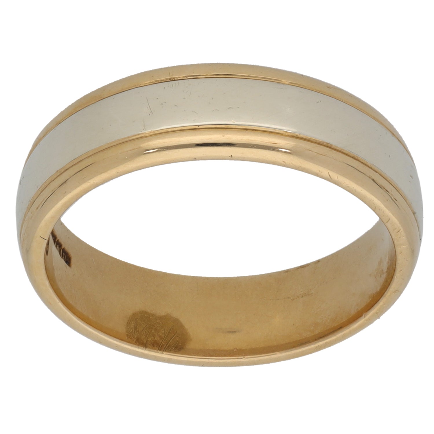 9ct Bi-Colour Gold Plain Wedding Ring Size R