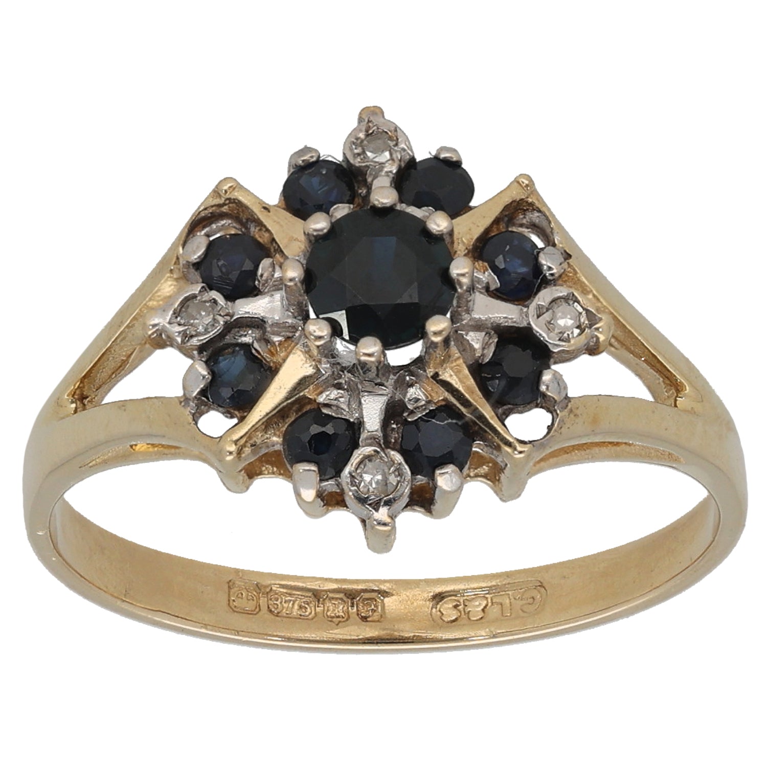 9ct Bicolour Gold Sapphire & 0.02ct Diamond Dress/Cocktail Ring Size Q