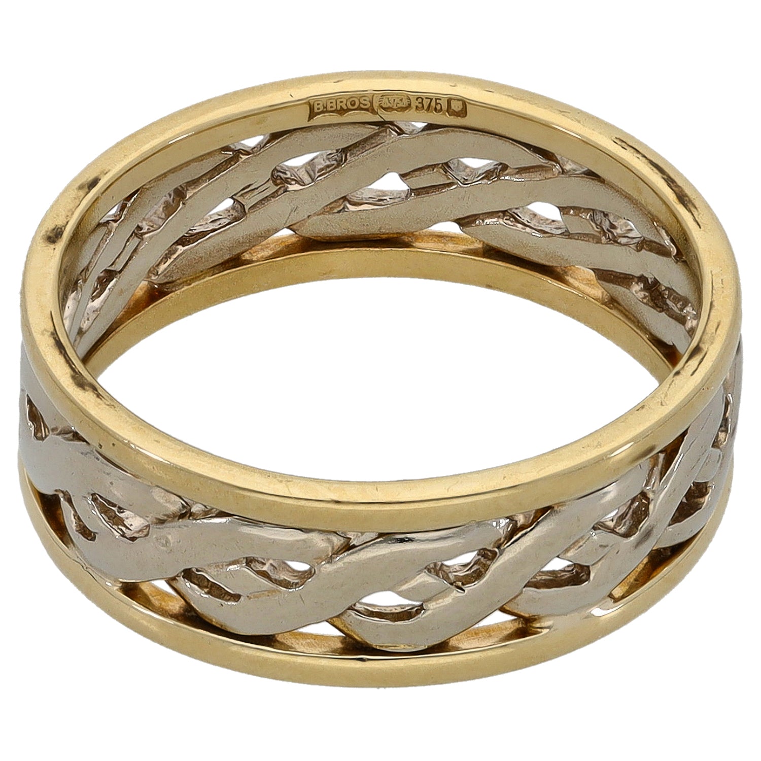 9ct Bi-Colour Gold Shaped Wedding Ring Size K
