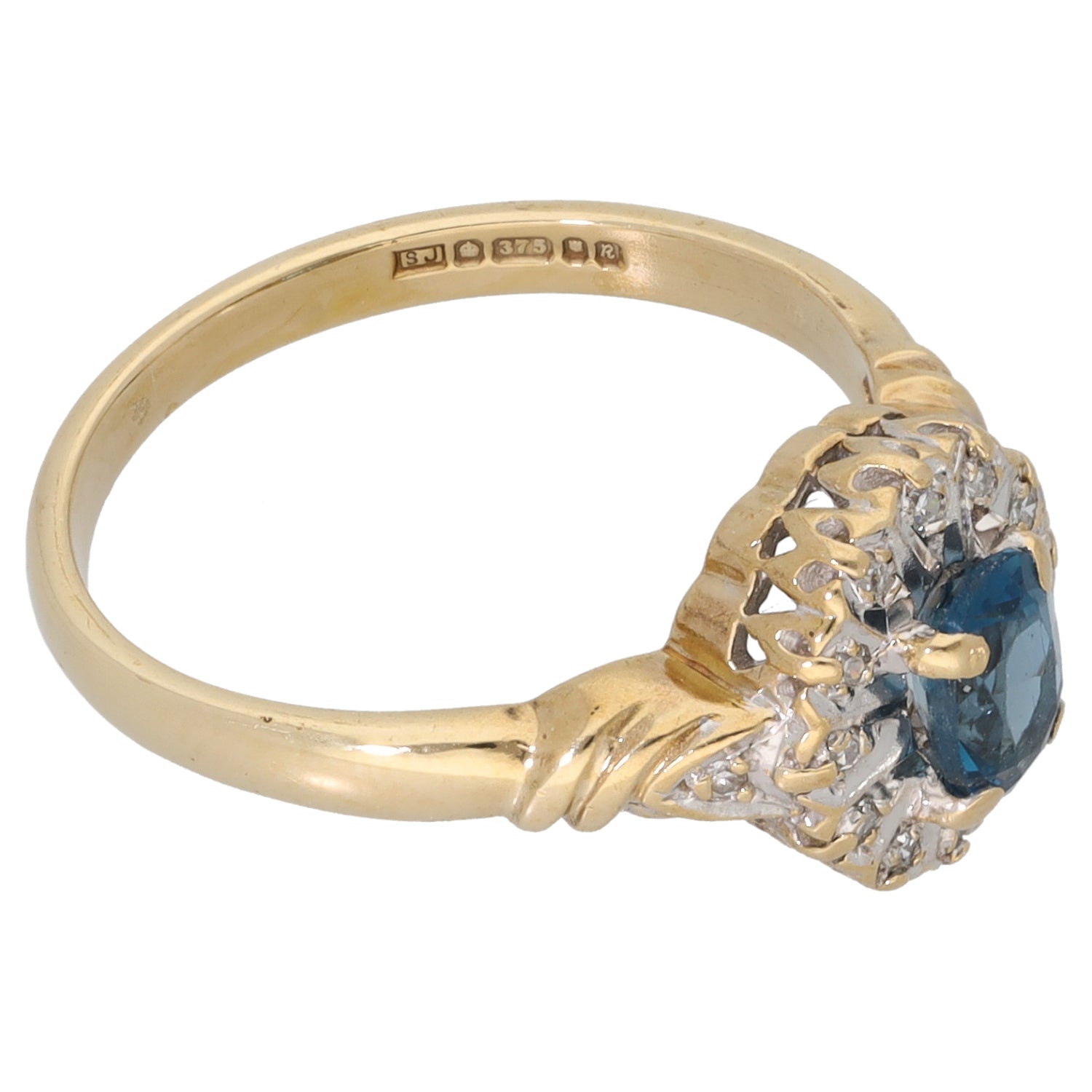 9ct Gold Topaz & 0.07ct Diamond Dress/Cocktail Ring Size M