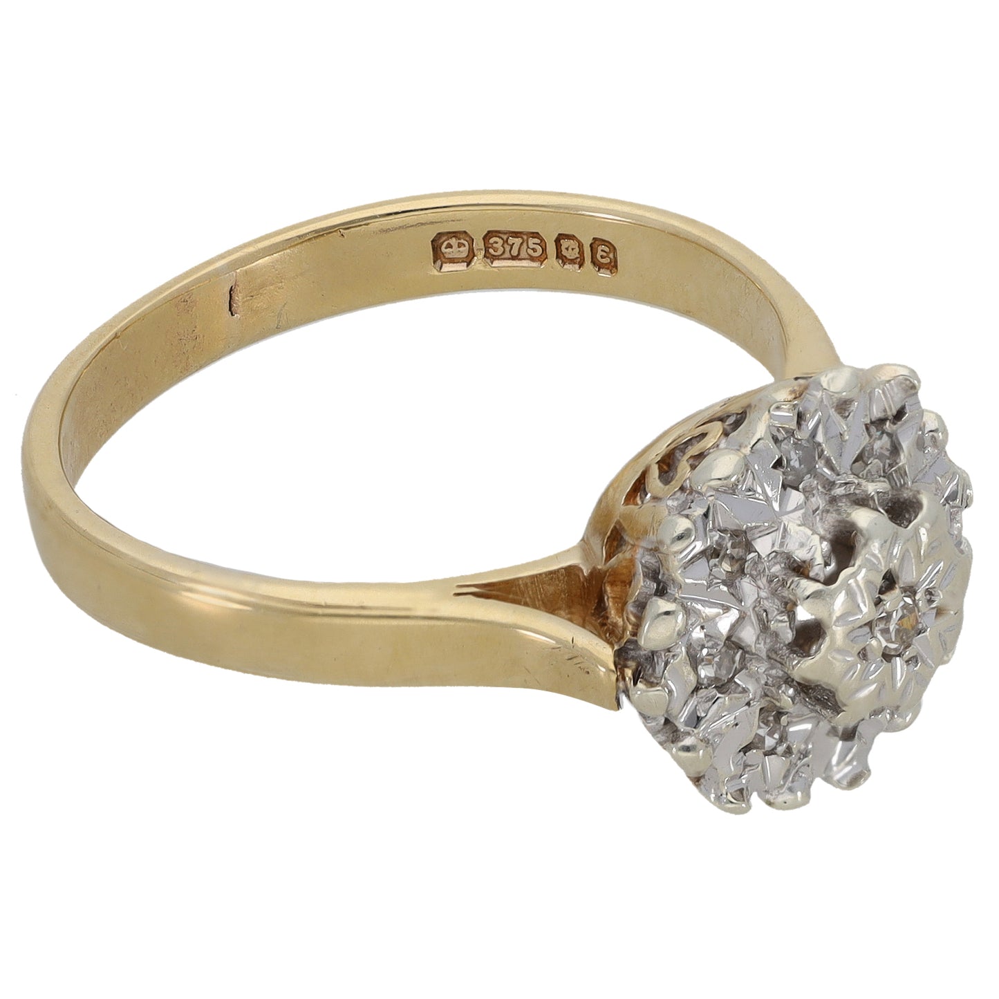9ct Gold 0.05ct Diamond Cluster Ring Size O