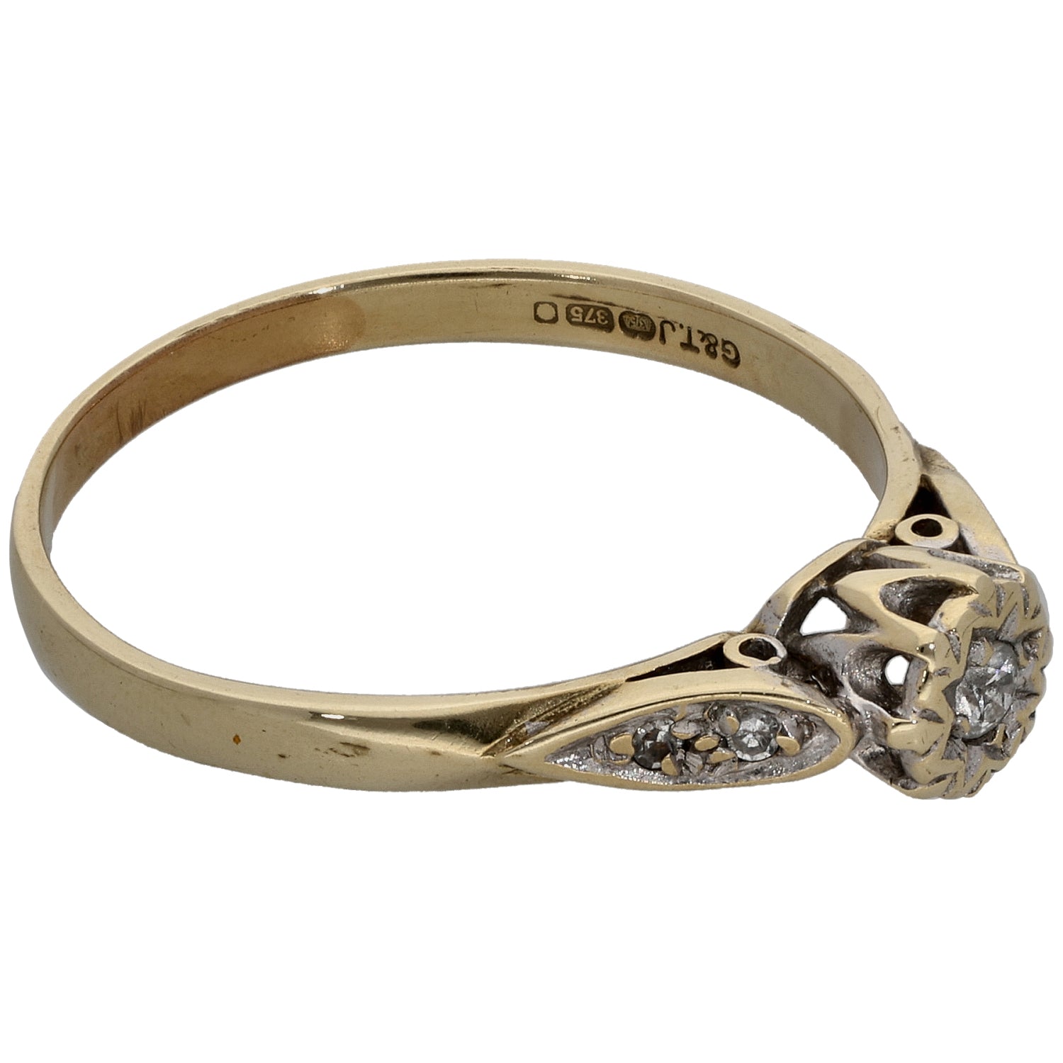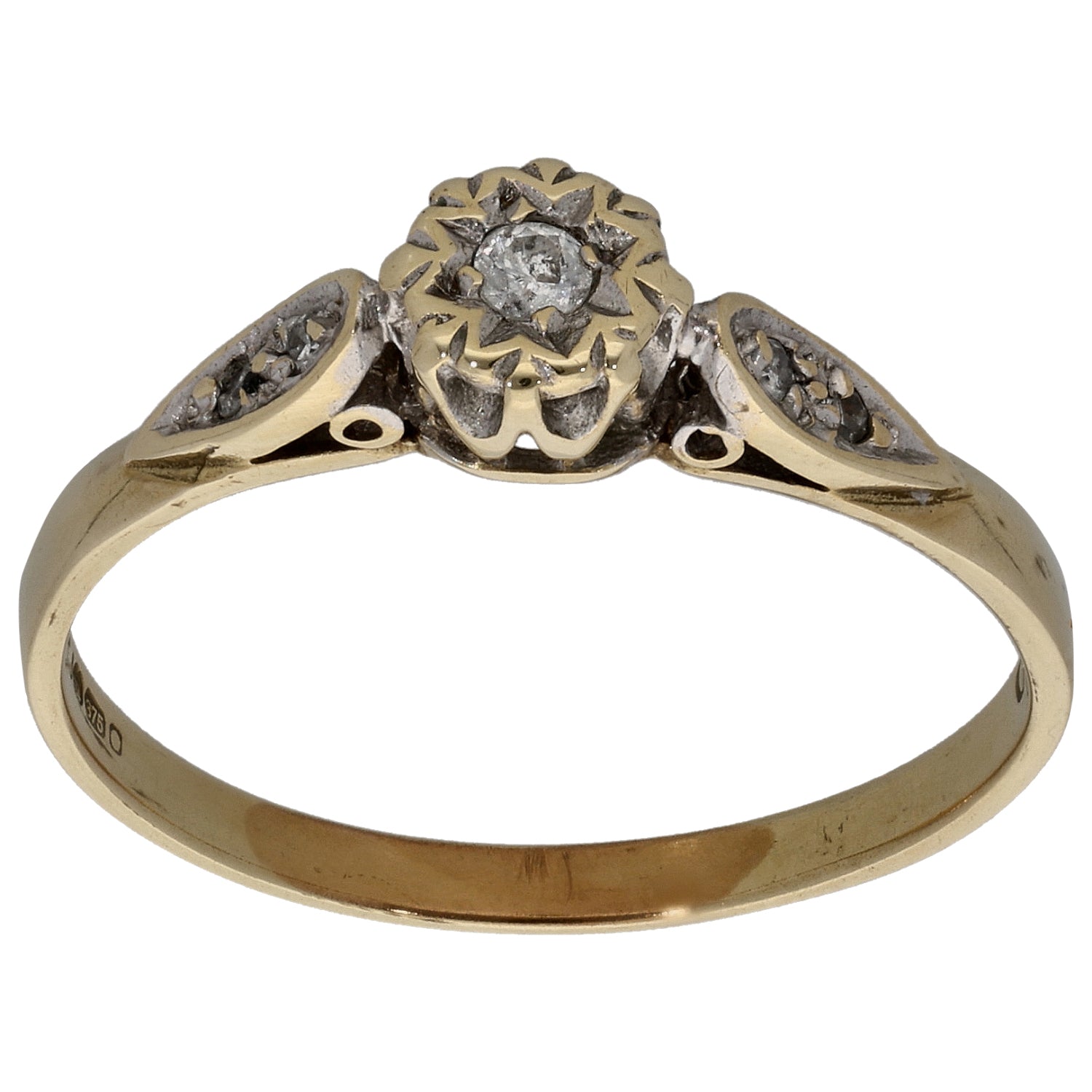9ct Gold 0.05ct Diamond Solitaire Ring With Accent Stones Size Q