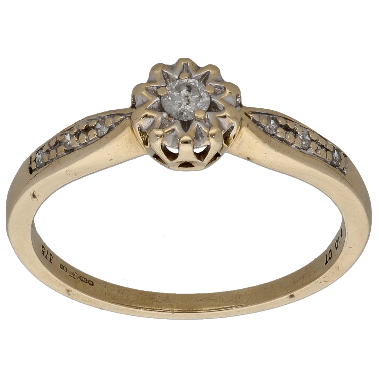 9ct Gold 0.10ct Diamond Solitaire Ring With Accent Stones Size O