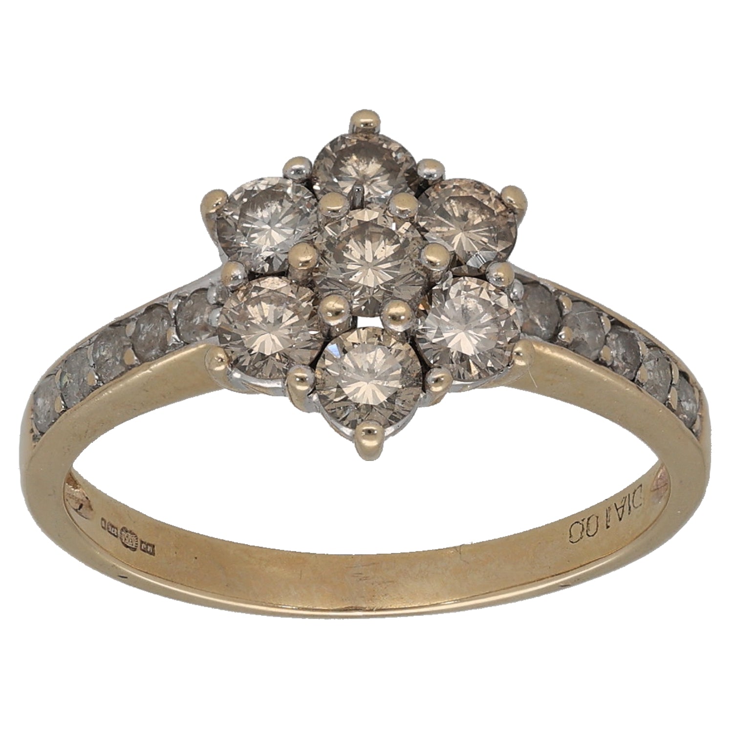 9ct Gold 1.00ct Diamond Cluster Ring Size N