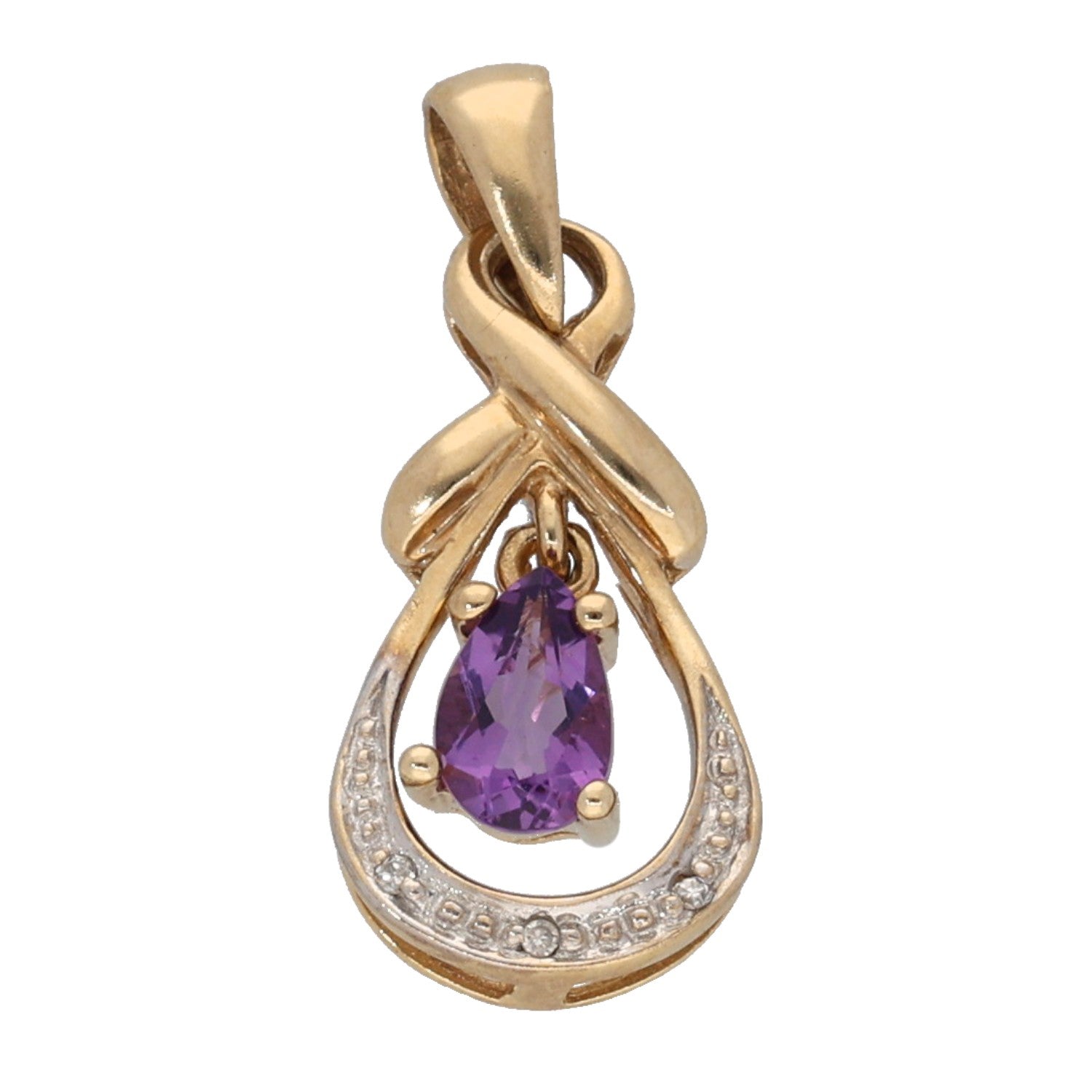 9ct Gold 0.015ct Diamond & Amethyst Dress/Cocktail Pendant