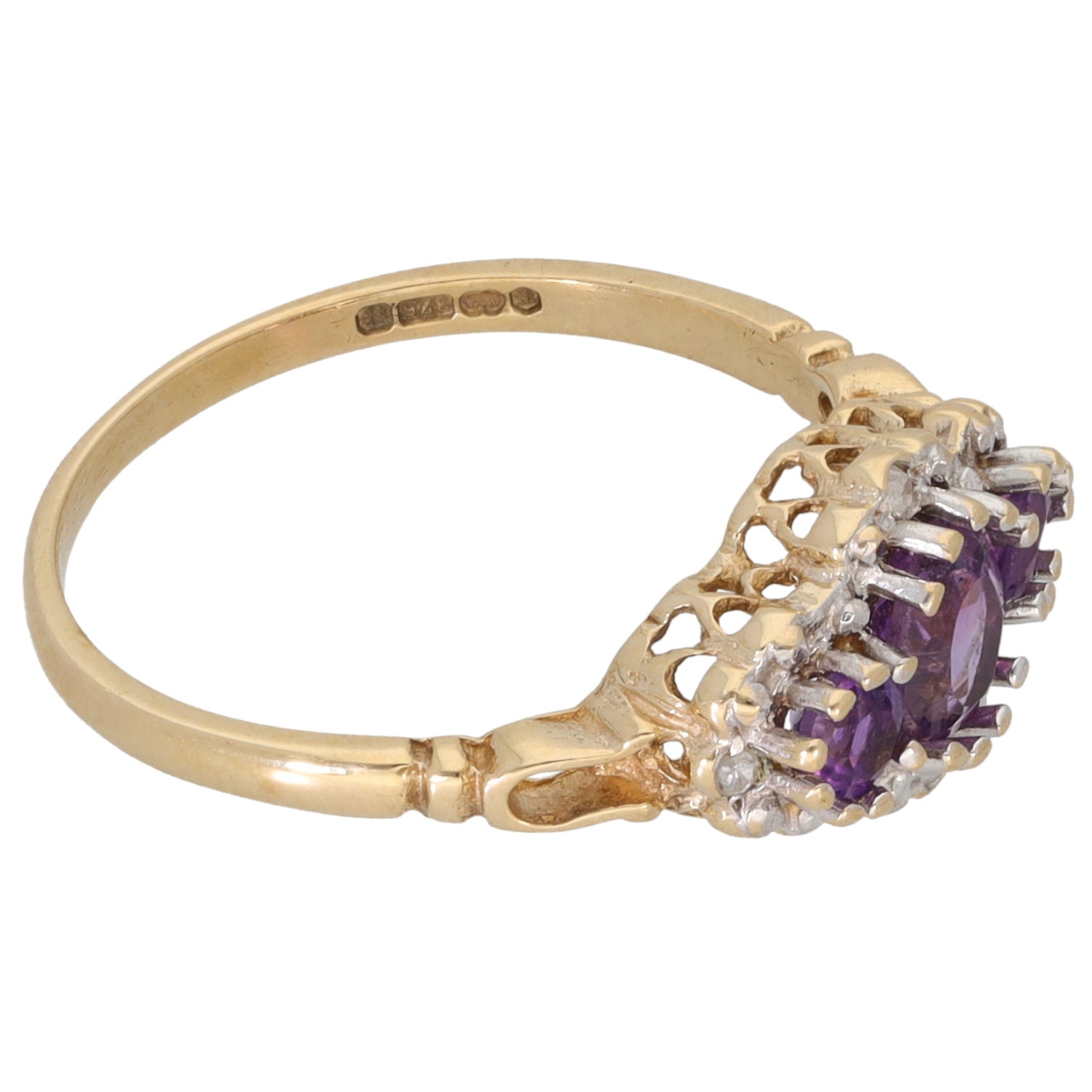 9ct Gold 0.02ct Diamond & Amethyst Dress/Cocktail Ring Size L
