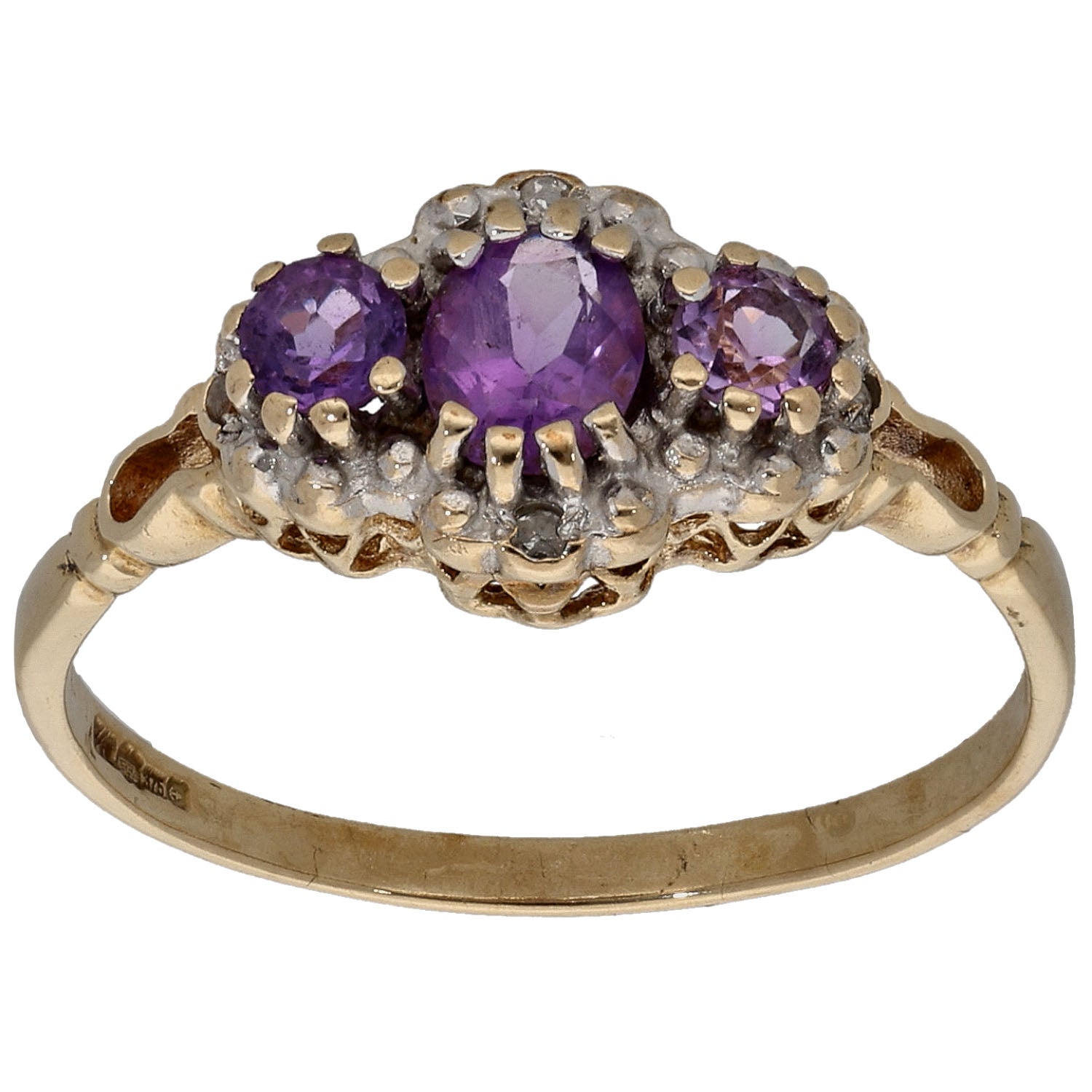 9ct Gold 0.02ct Diamond & Amethyst Dress/Cocktail Ring Size P
